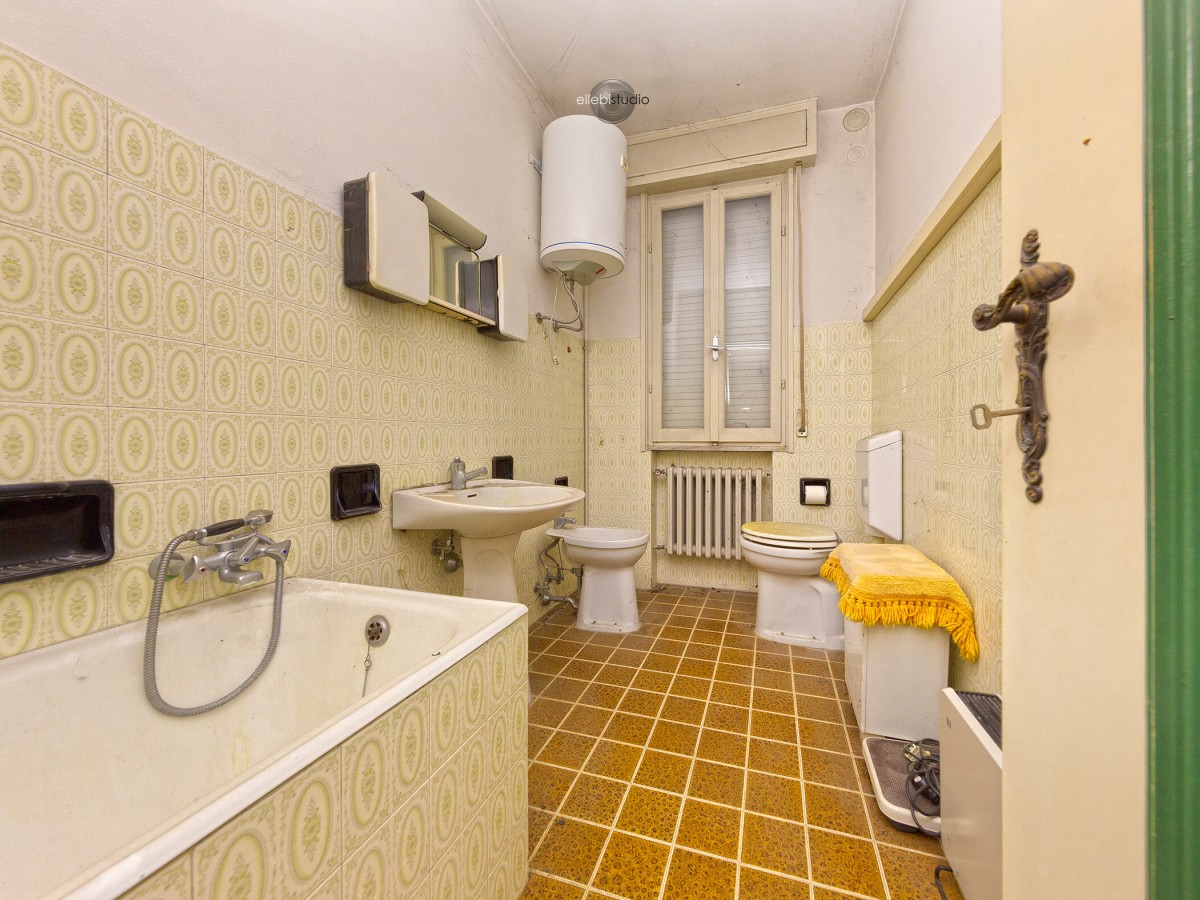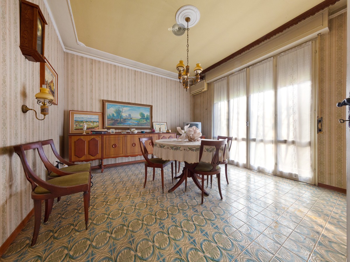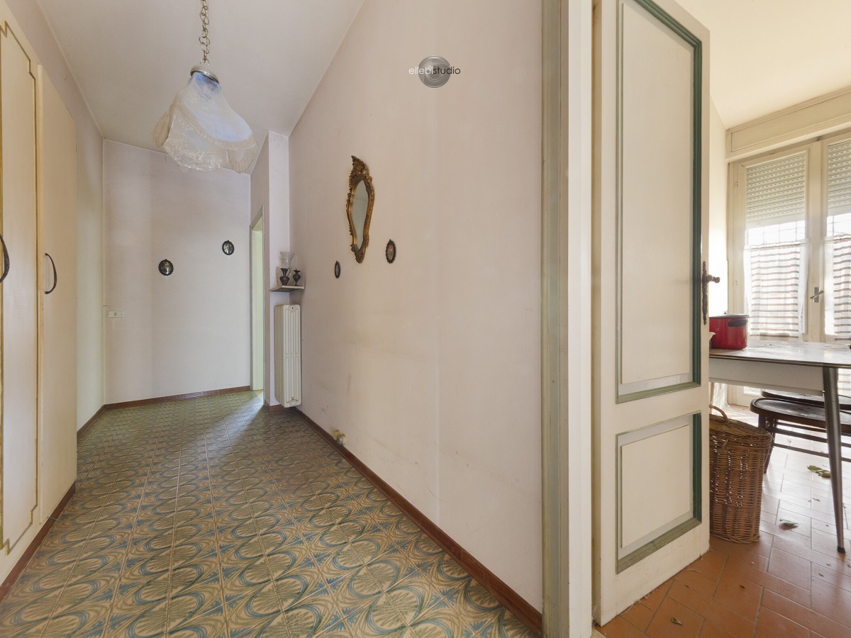 Al piano terra troviamo una sala da pranzo e una cucina separata, entrambe con accesso diretto all’area cortiliva privata, perfetta per pranzi all’aperto e momenti di relax. Il corridoio conduce alla zona notte composta da due camere da letto matrimoniali e un bagno finestrato.
