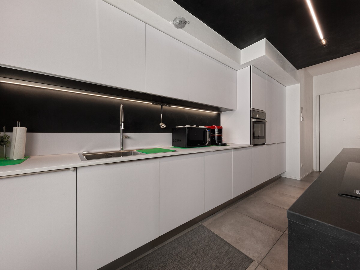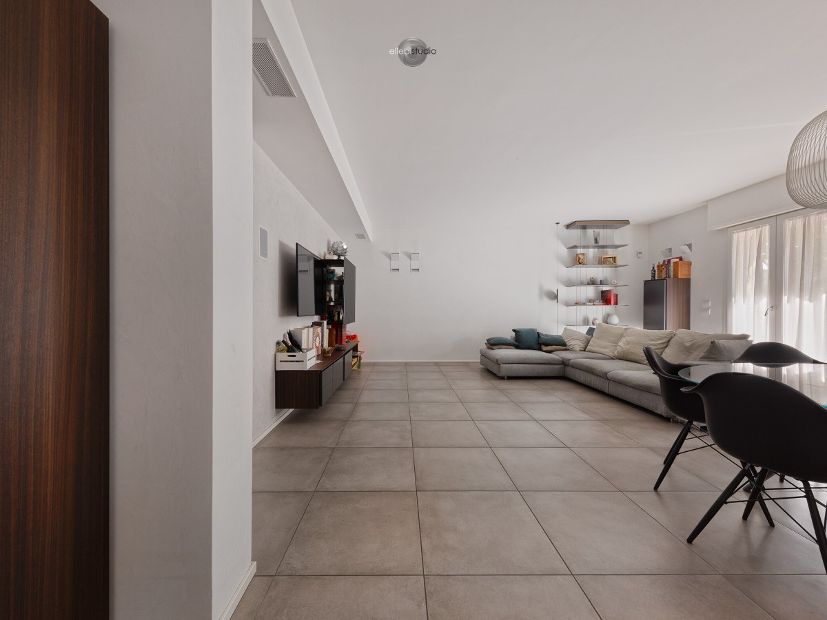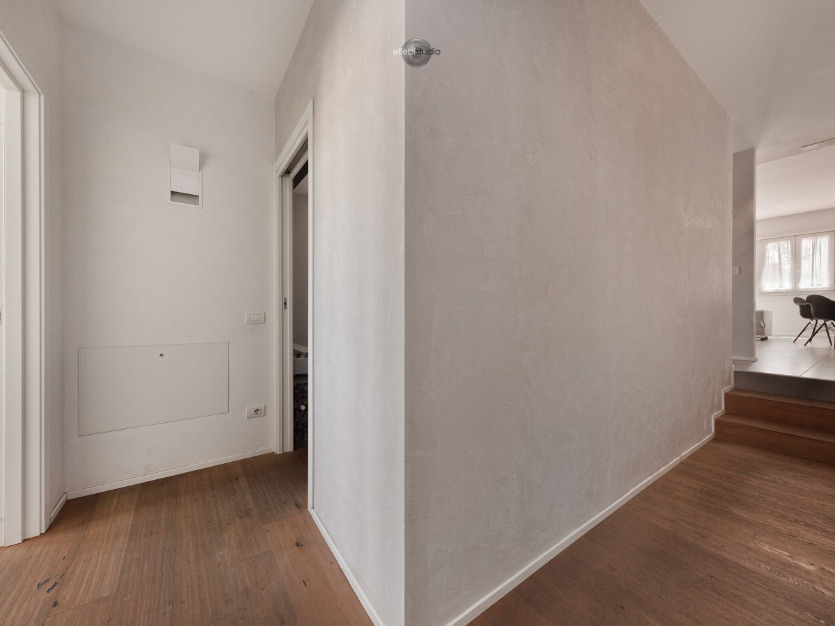 L’ingresso si apre su un ampio open space estremamente luminoso, dove ogni dettaglio è stato studiato per creare un ambiente raffinato e accogliente. Le pareti in stucco veneziano donano profondità e carattere agli spazi, regalando un impatto visivo di forte eleganza.