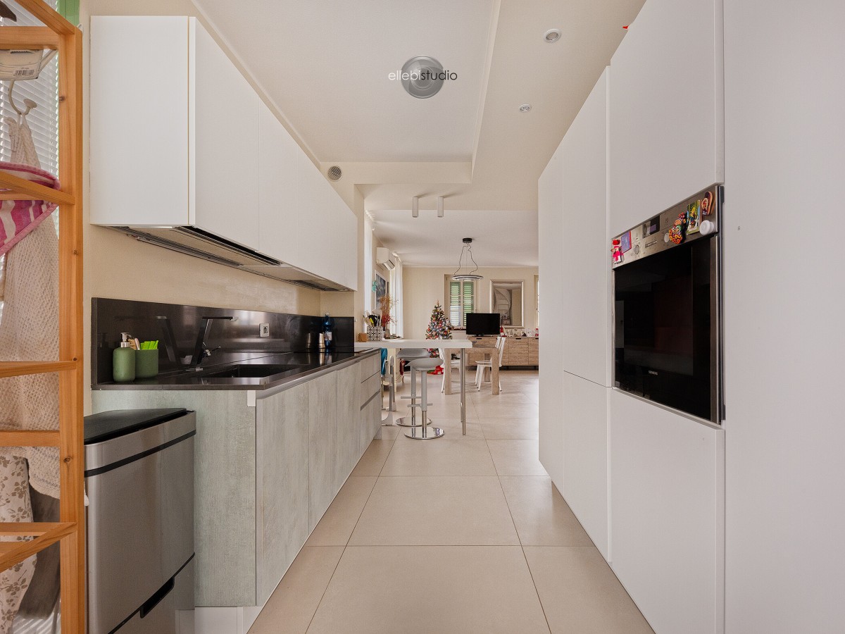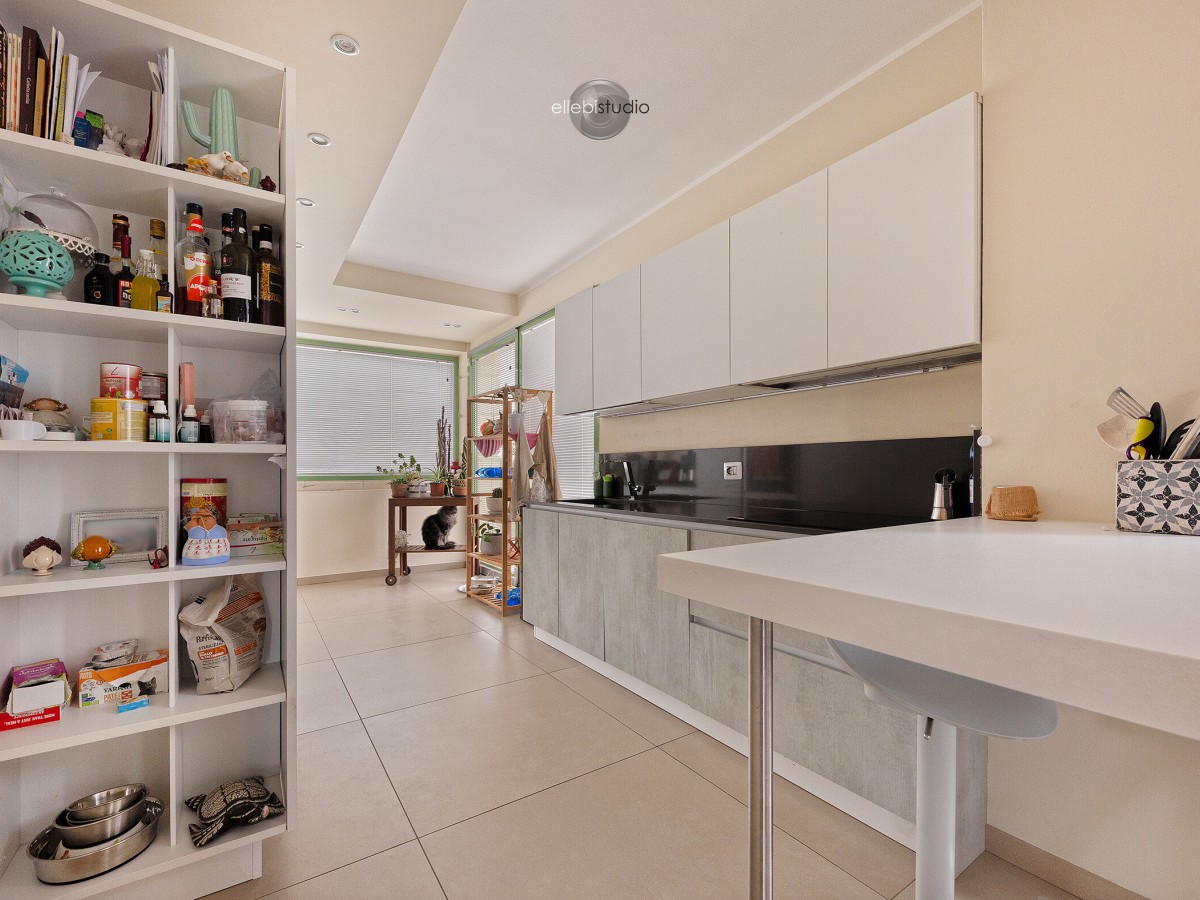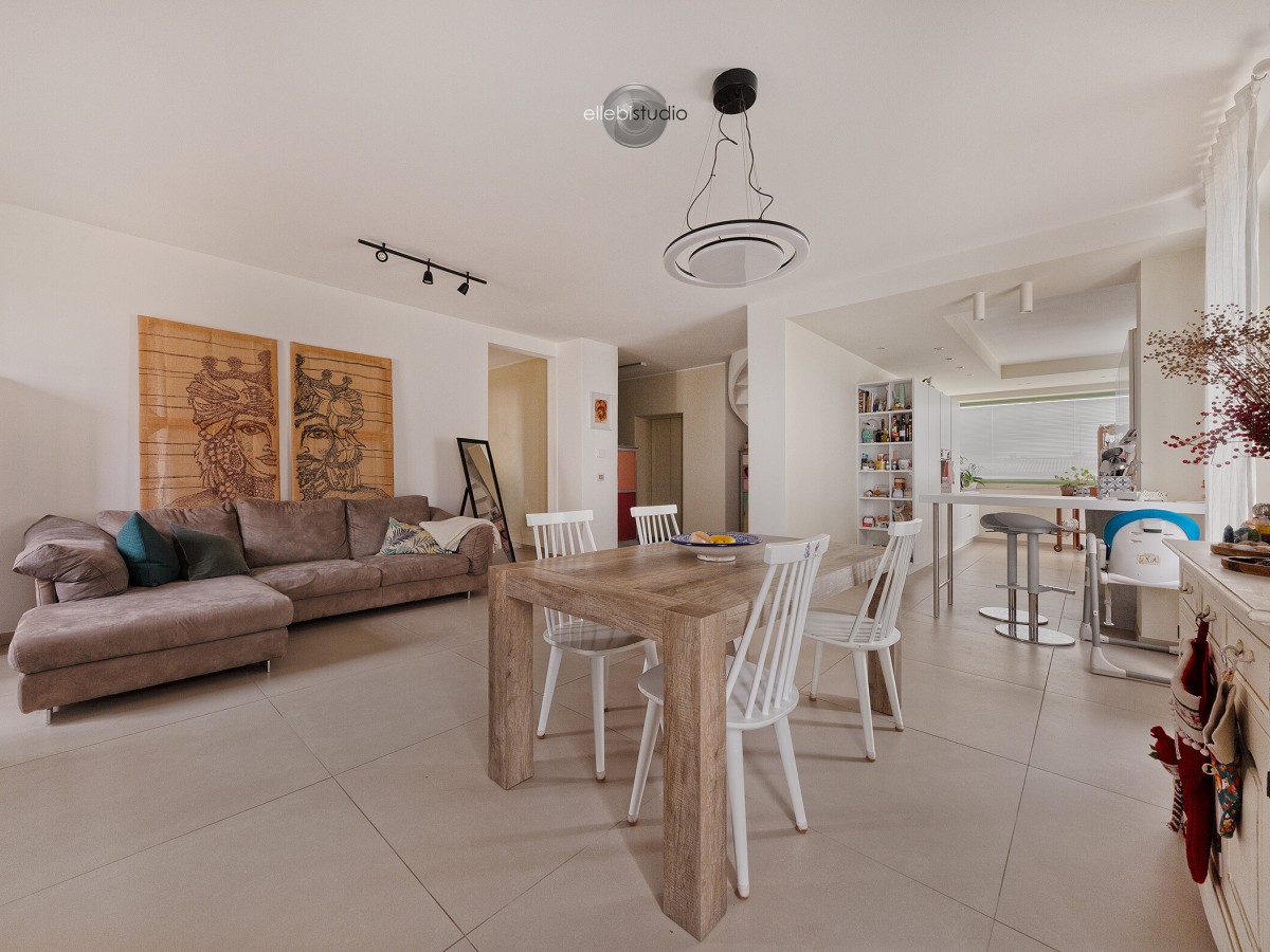 La zona giorno si apre su un ampio living con cucina a vista, che conduce a un meraviglioso terrazzo di oltre 30 mq, perfetto per momenti di relax, cene all’aperto o semplicemente godersi il panorama in totale privacy.