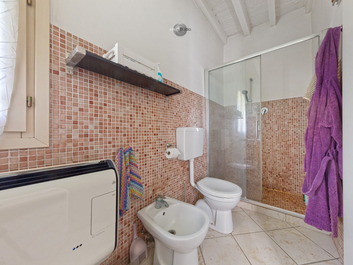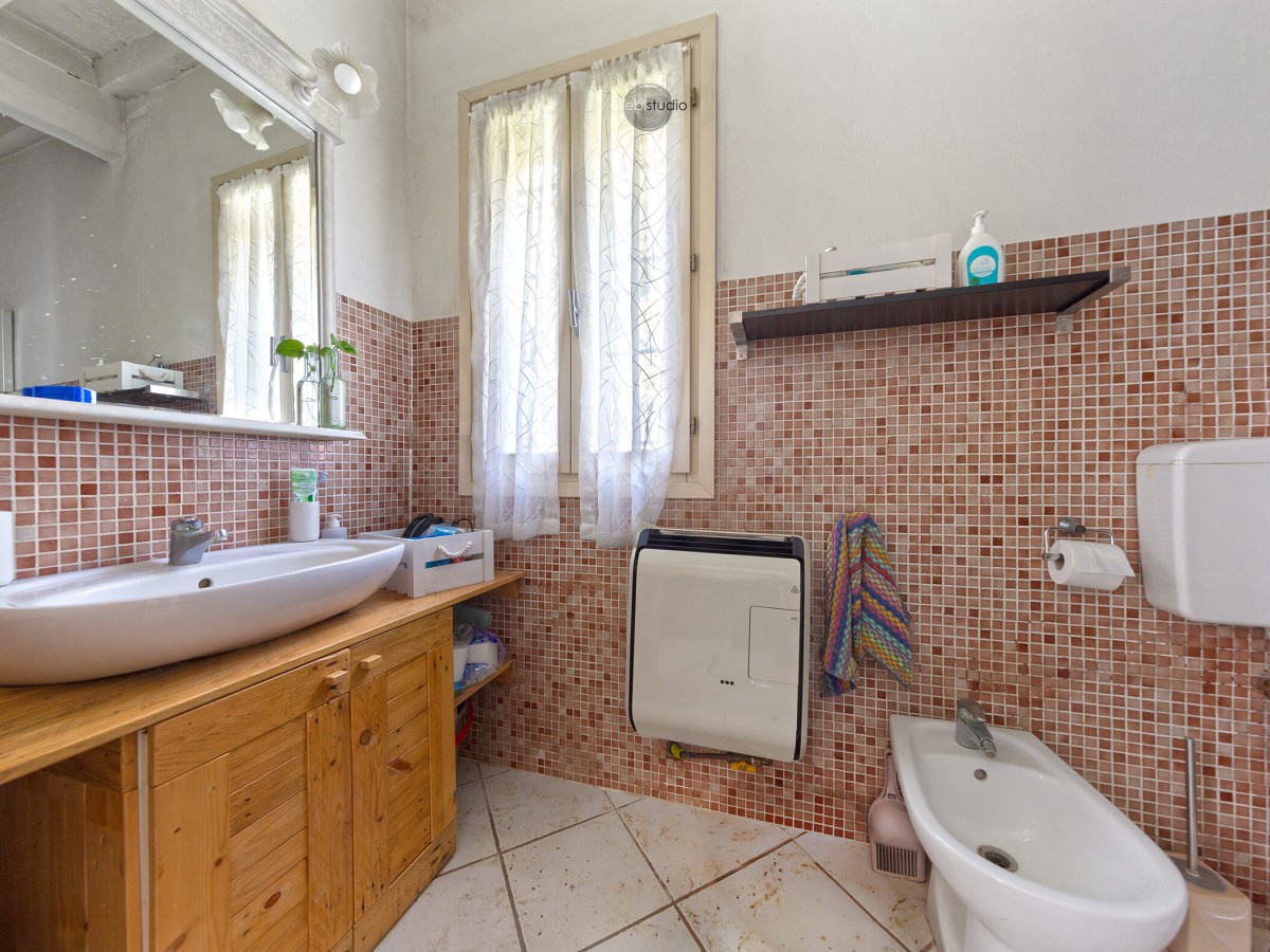 Il bagno, funzionale e curato, completa la zona interna con semplicità ed eleganza.