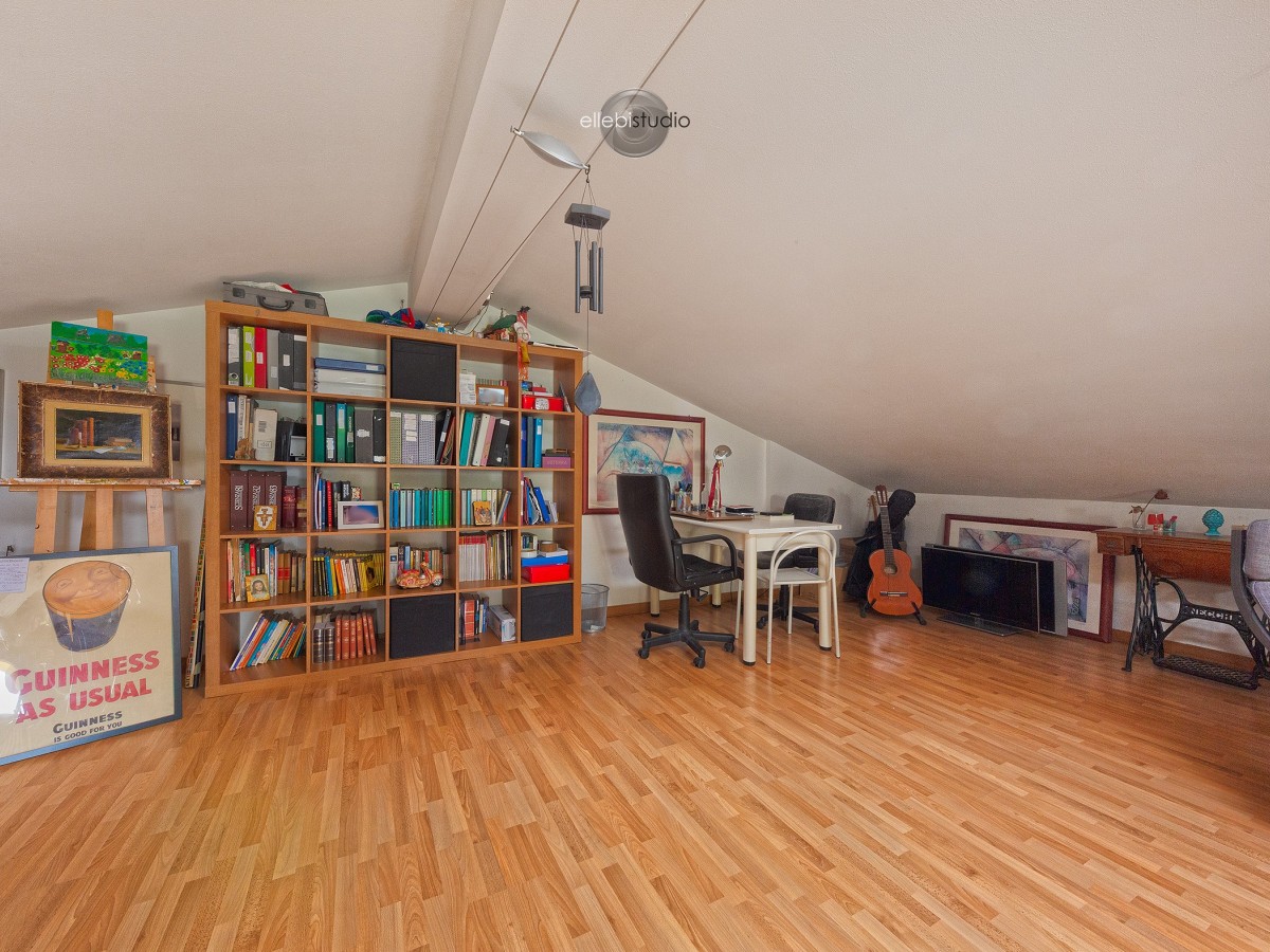 Al primo piano si trova la zona notte composta da tre camere da letto ben proporzionate e un bagno con vasca. Al secondo piano è presente un locale sottotetto sfruttabile, ideale come studio, stanza hobby, area relax o spazio aggiuntivo in base alle esigenze.