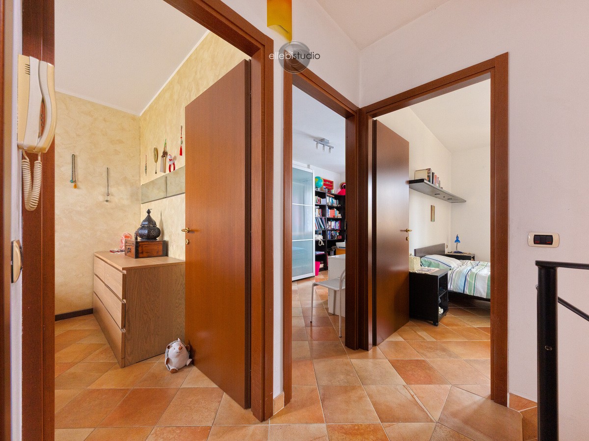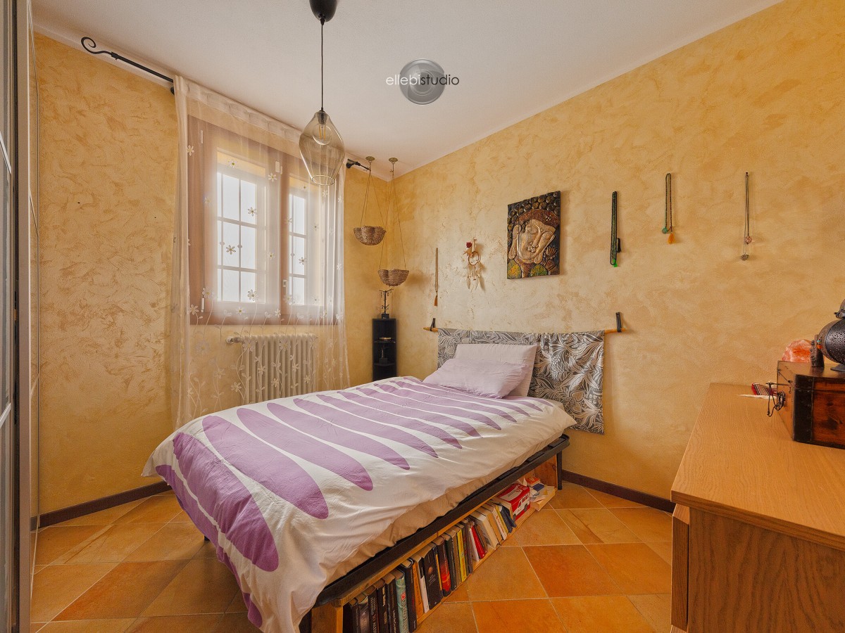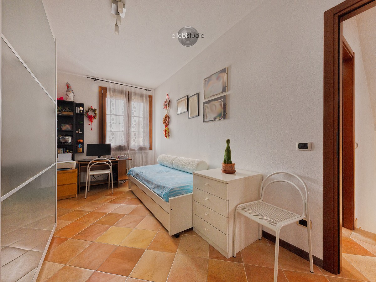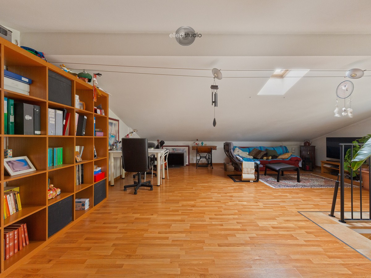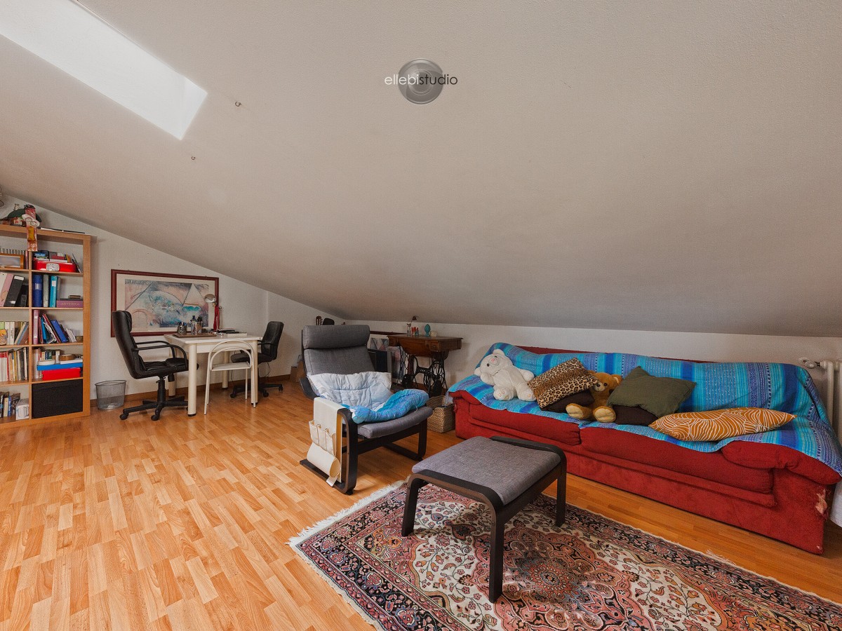 Al primo piano si trova la zona notte composta da tre camere da letto ben proporzionate e un bagno con vasca. Al secondo piano è presente un locale sottotetto sfruttabile, ideale come studio, stanza hobby, area relax o spazio aggiuntivo in base alle esigenze.