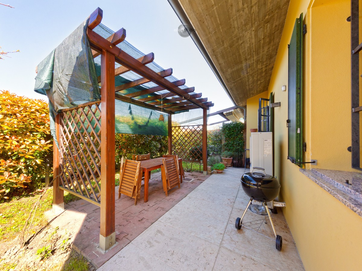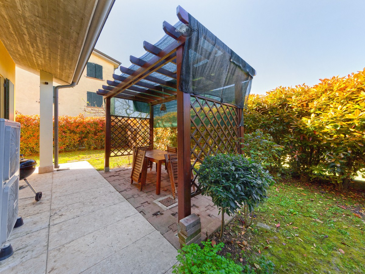 All’esterno, un giardino privato di circa 180 mq valorizza la casa e offre uno spazio verde vivibile. Il giardino è già dotato di impianto di irrigazione automatico e impianto luci con accensione crepuscolare, perfetti per avere uno spazio sempre curato e piacevole anche la sera.