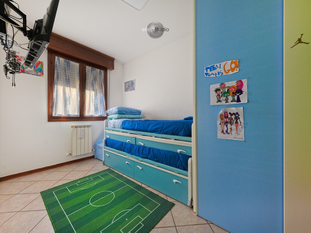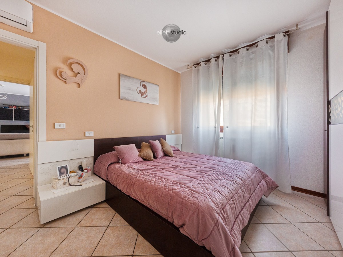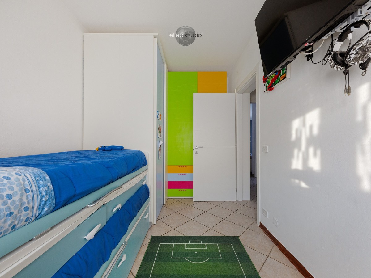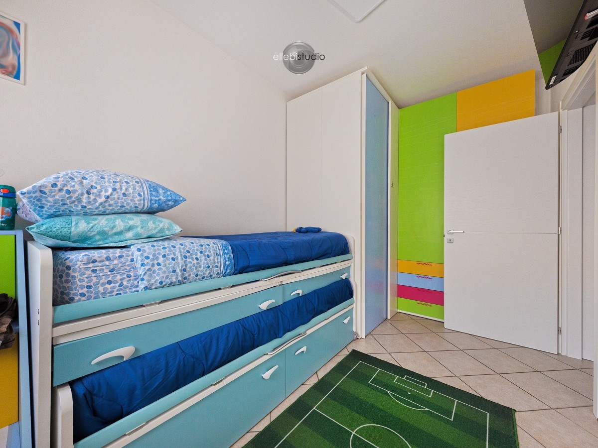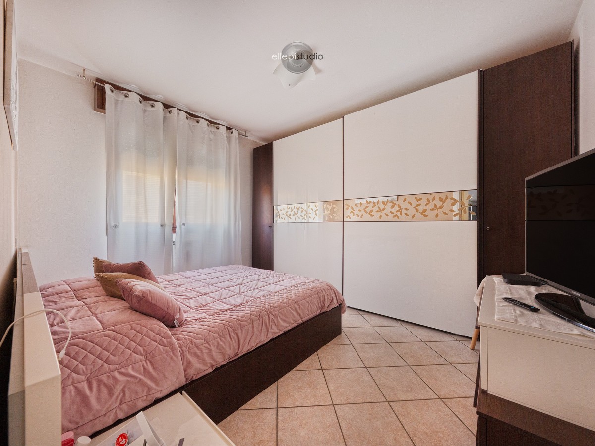 La zona notte offre due camere da letto, tra cui una matrimoniale ampia e confortevole, pensata per il vero riposo, oltre a un bagno finestrato, pratico e arioso.