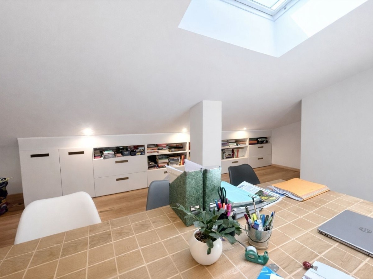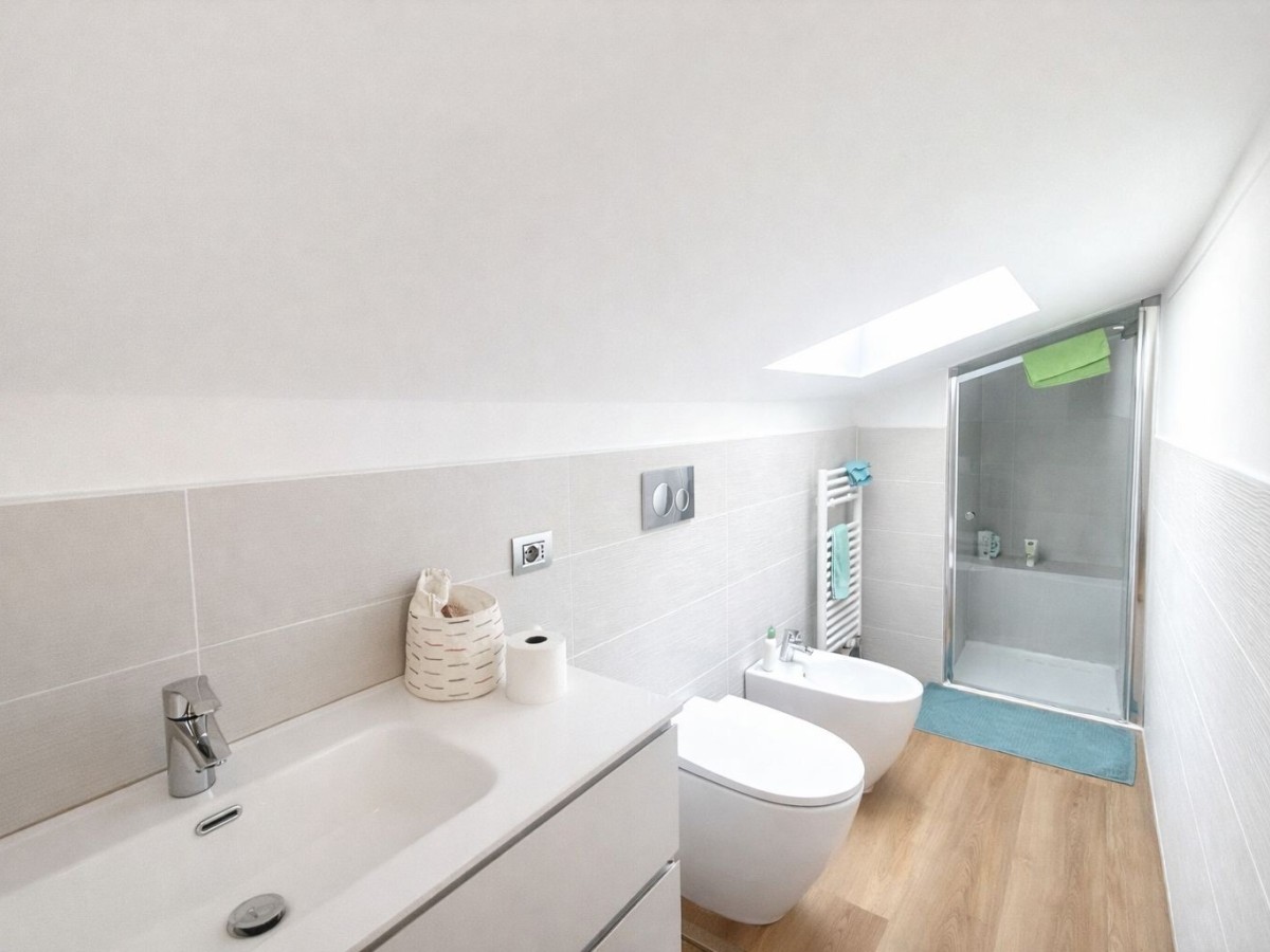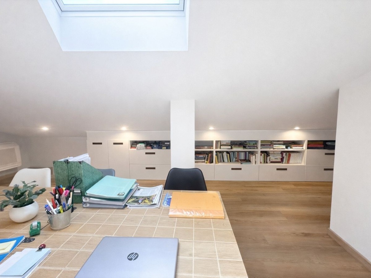 Al p. superiore, raggiungibile attraverso una rinnovata e giovanile SCALA A CHIOCCIOLA, ampia MANSARDA da poter adibire a QUARTA CAMERA o a un ambiente studio/sfogo di circa 40 mq con ulteriore bagno e zona lavanderia.