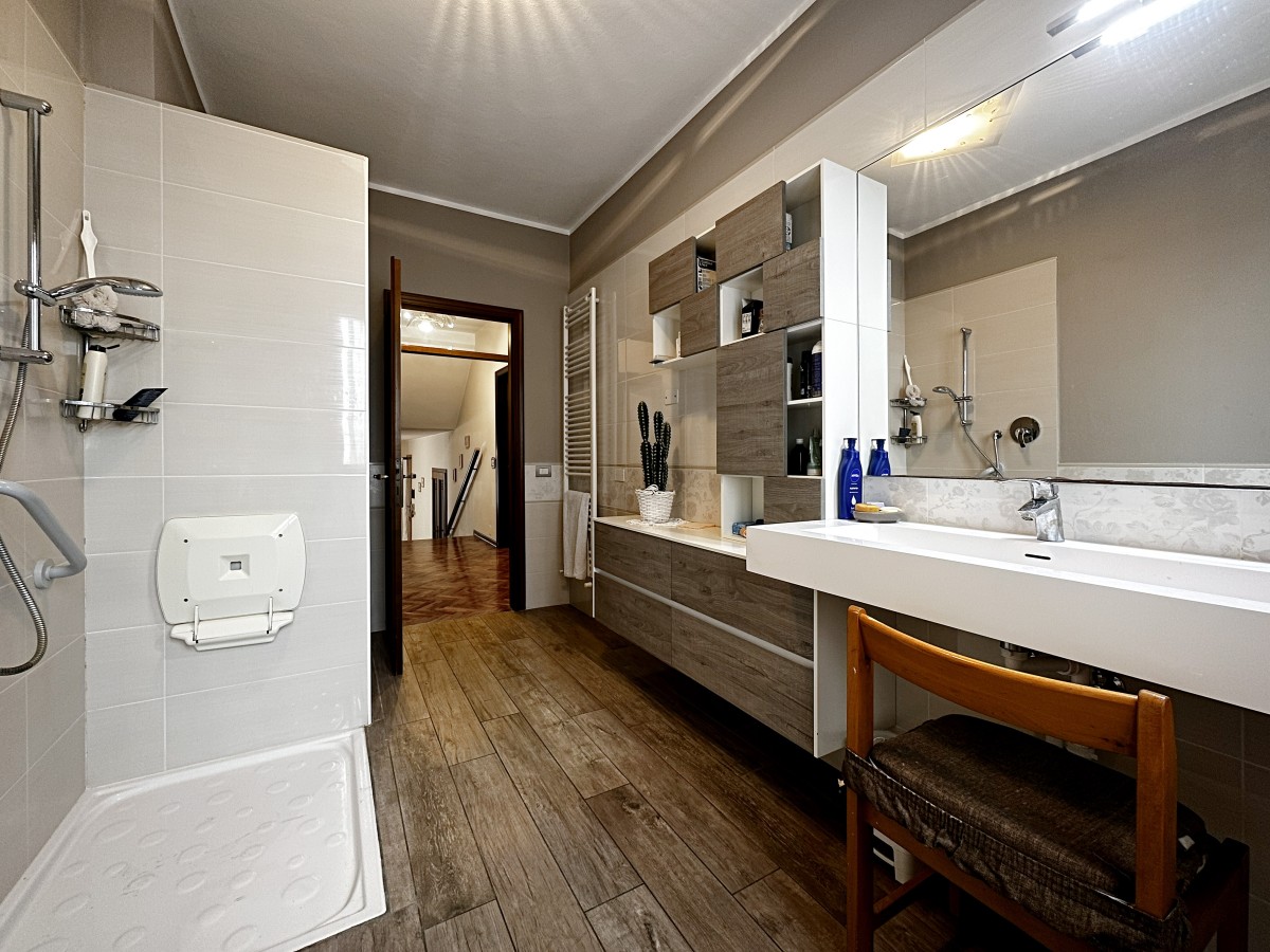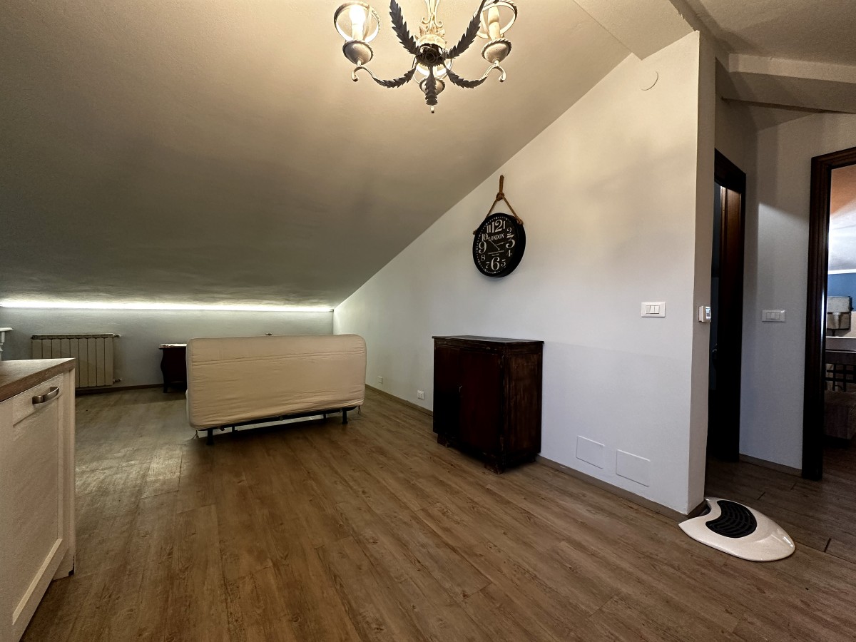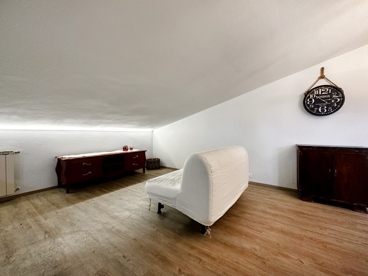 Salendo al piano superiore scopri una grande mansarda con ingresso indipendente, un ambiente versatile che ospita una seconda abitazione completa: soggiorno con angolo cottura, disimpegno notte, una camera matrimoniale, una camera studio e bagno. Uno spazio perfetto per ospiti, figli grandi o per creare una soluzione autonoma.