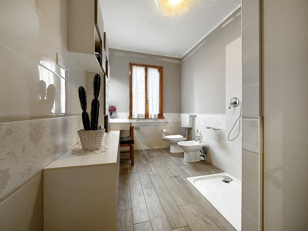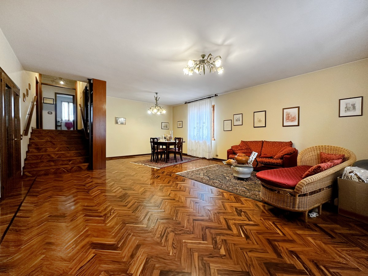 Al piano terra vieni accolto da un luminoso soggiorno e da una cucina abitabile, perfetta per la vita quotidiana e per condividere momenti speciali. Pochi scalini ti conducono alla zona notte, dove trovi tre ampie camere matrimoniali e un bagno, ideali per garantire privacy e relax a tutta la famiglia.