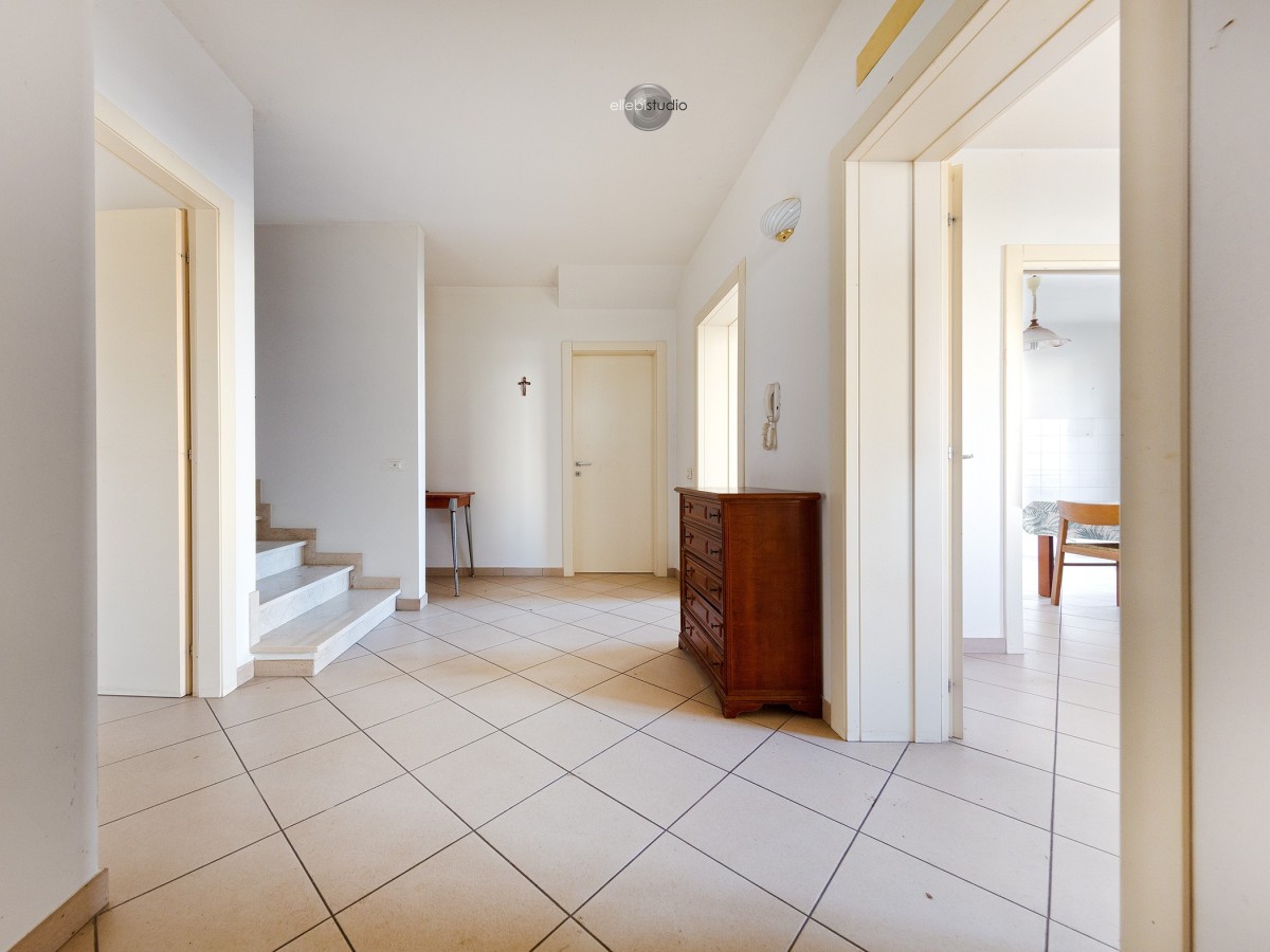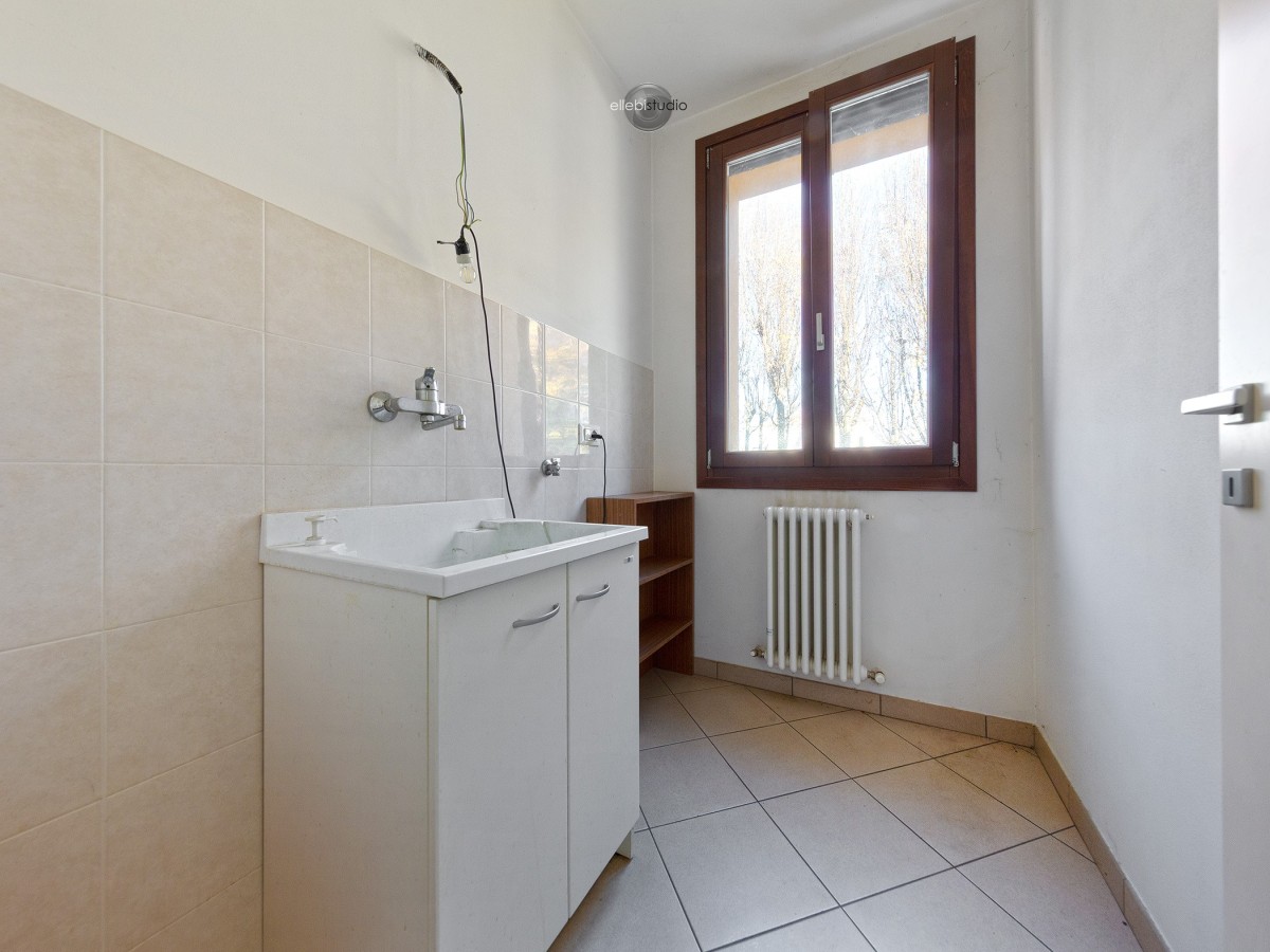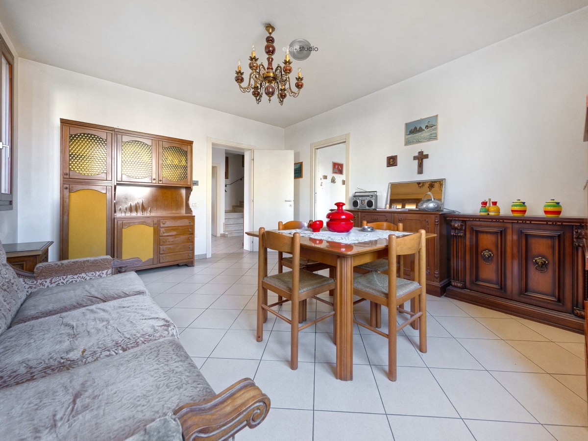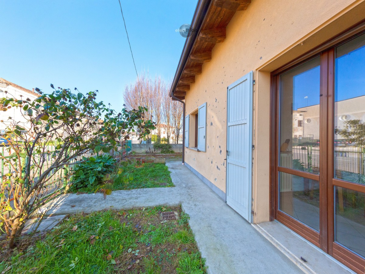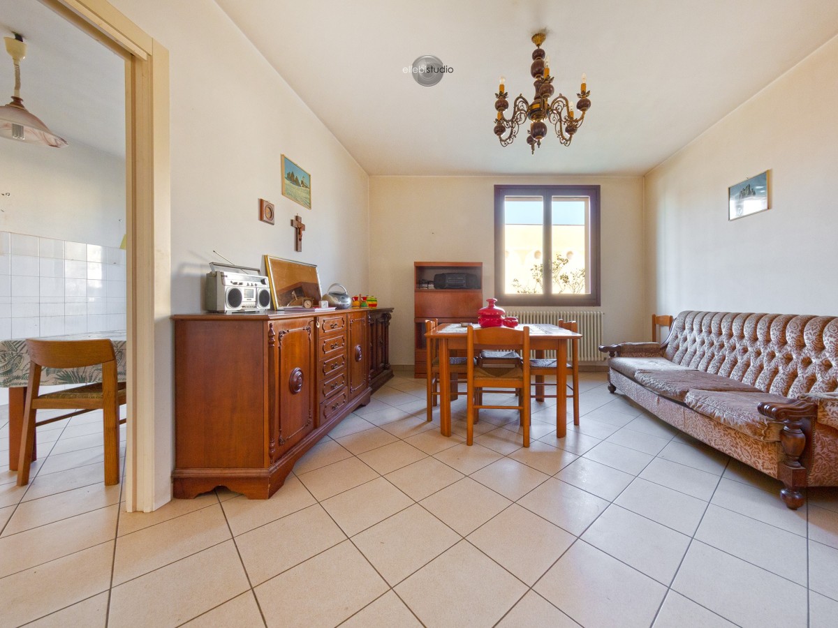 L’abitazione accoglie con un disimpegno che conduce alla zona living, uno spazio luminoso e funzionale collegato direttamente alla cucina. La cucina, che comunica nuovamente con il disimpegno, è dotata di una pratica porta finestra che permette l’accesso all’esterno, ideale per arieggiare l’ambiente o per organizzare pranzi e cene all’aperto. Al piano terra si trovano inoltre il bagno, una comoda lavanderia e la zona notte principale composta da due camere da letto.