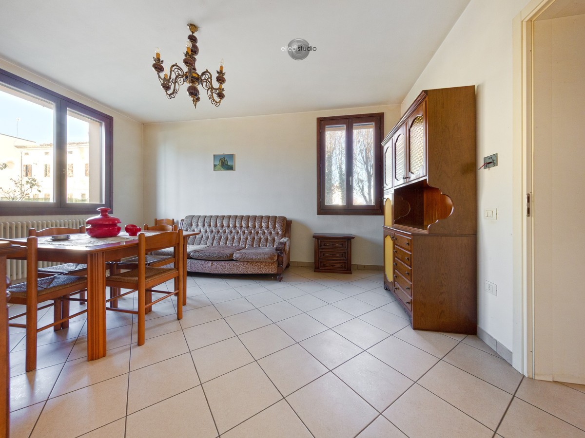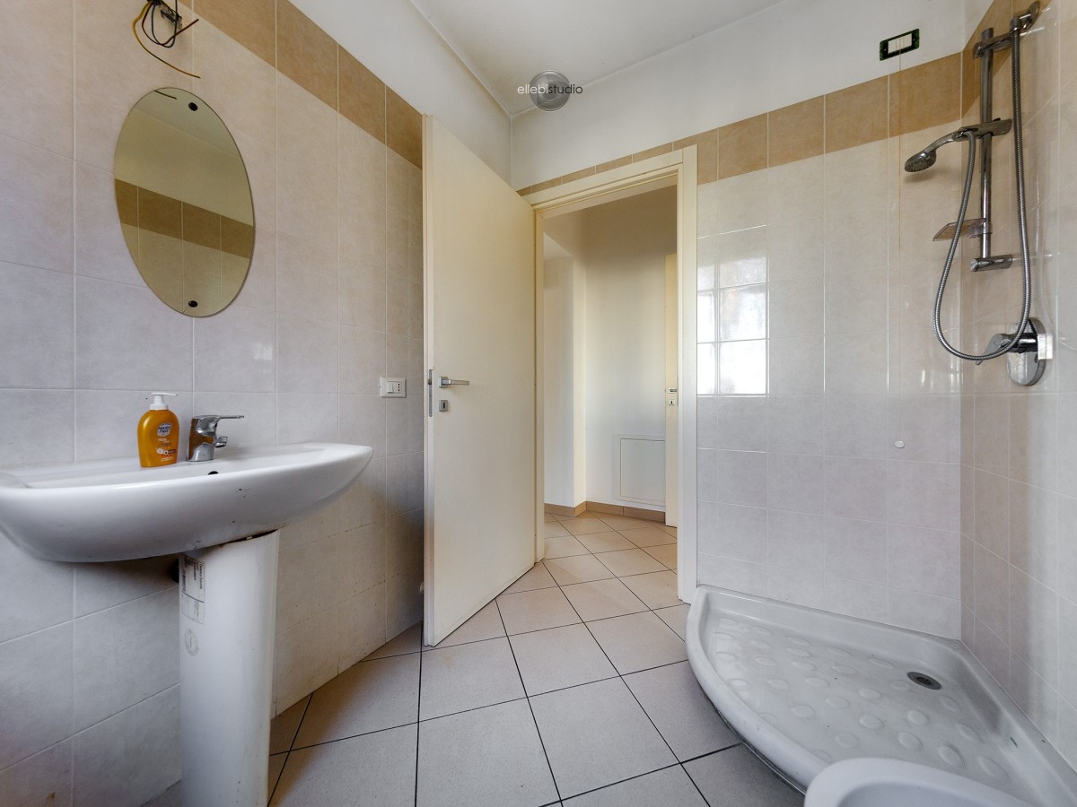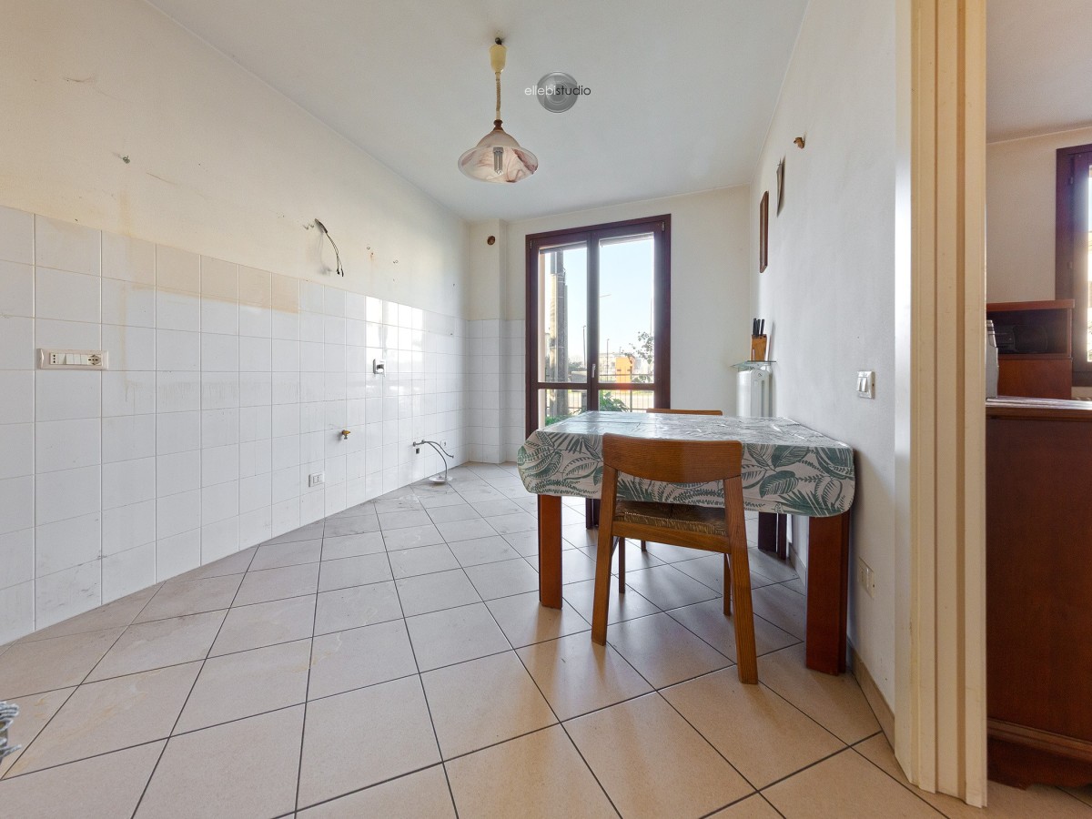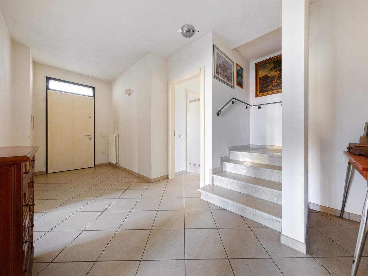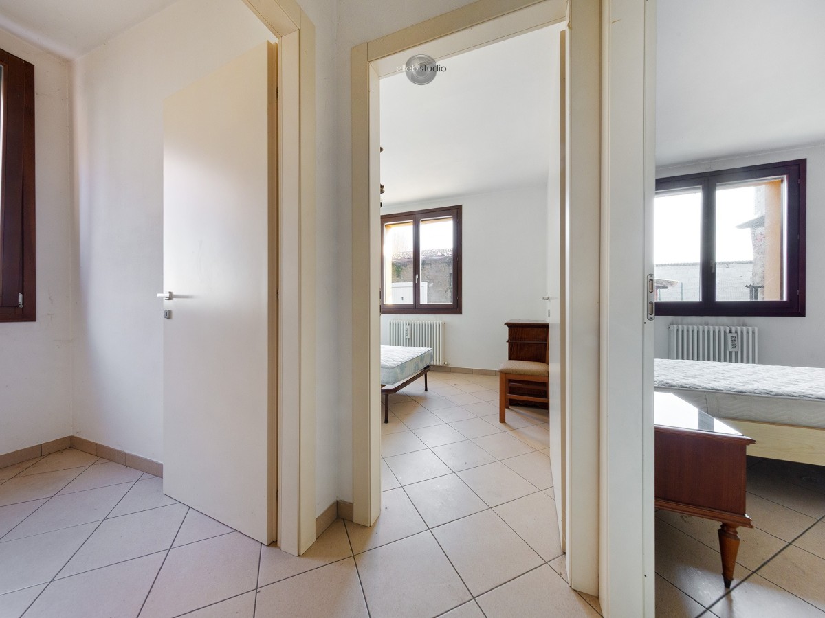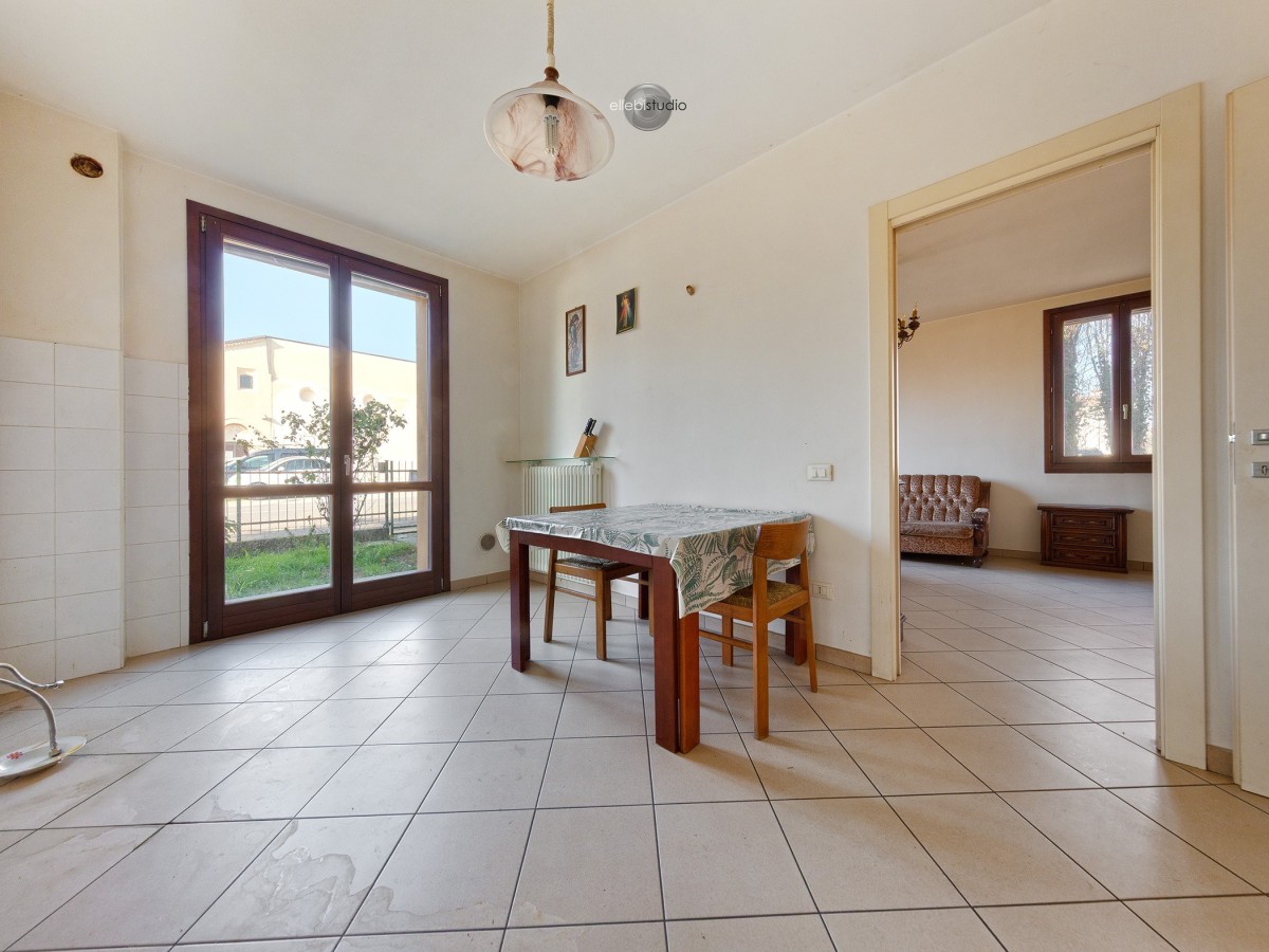 L’abitazione accoglie con un disimpegno che conduce alla zona living, uno spazio luminoso e funzionale collegato direttamente alla cucina. La cucina, che comunica nuovamente con il disimpegno, è dotata di una pratica porta finestra che permette l’accesso all’esterno, ideale per arieggiare l’ambiente o per organizzare pranzi e cene all’aperto. Al piano terra si trovano inoltre il bagno, una comoda lavanderia e la zona notte principale composta da due camere da letto.