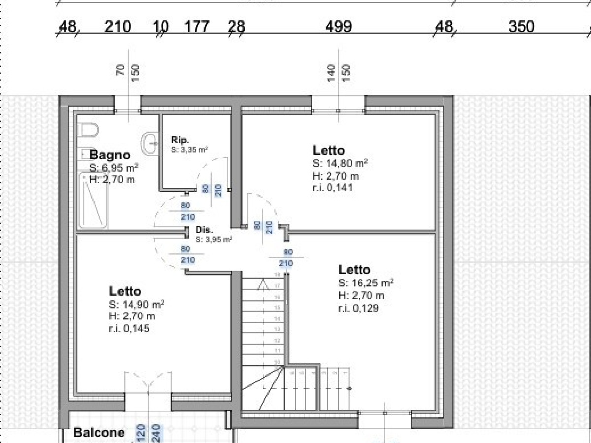 Al piano primo troviamo la zona notte, composta da tre camere matrimoniali e doppie, un secondo bagno finestrato, ripostiglio e balcone (a seconda della tipologia). Gli ambienti sono ampi, lineari e facilmente arredabili, pensati per soddisfare le esigenze di famiglie e coppie che cercano comfort e indipendenza.