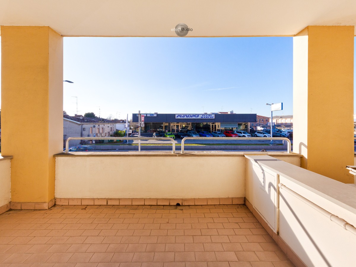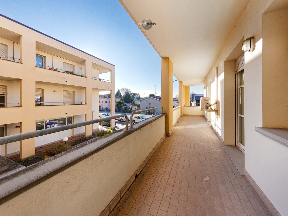 Dispone di un ampio balcone interno affacciato sul cortile di ingresso condominiale e di un secondo balcone con affaccio esterno.