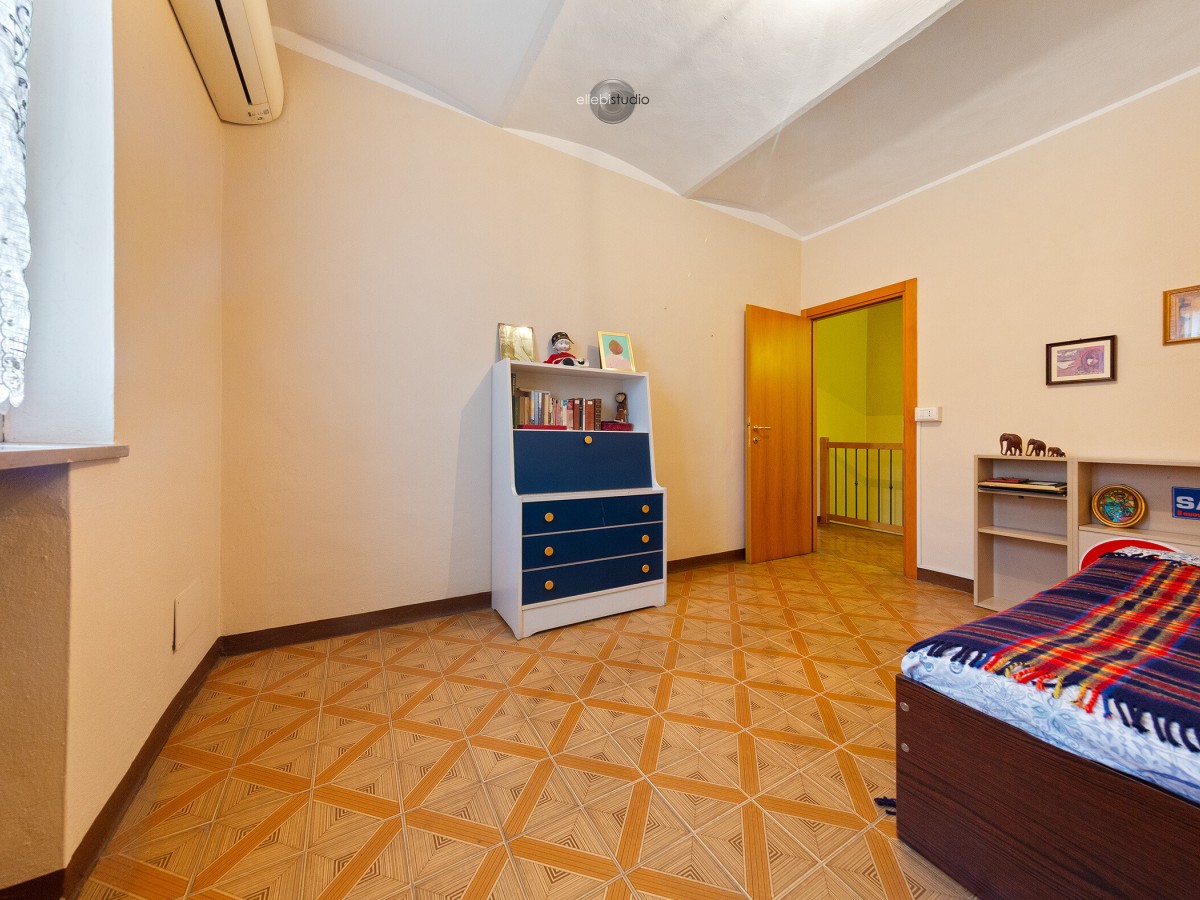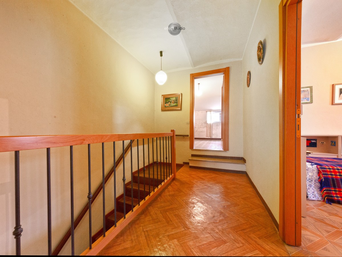 Salendo la scala si accede al piano primo, dove il disimpegno notte conduce a tre camere da letto, di cui una dotata di cabina armadio.