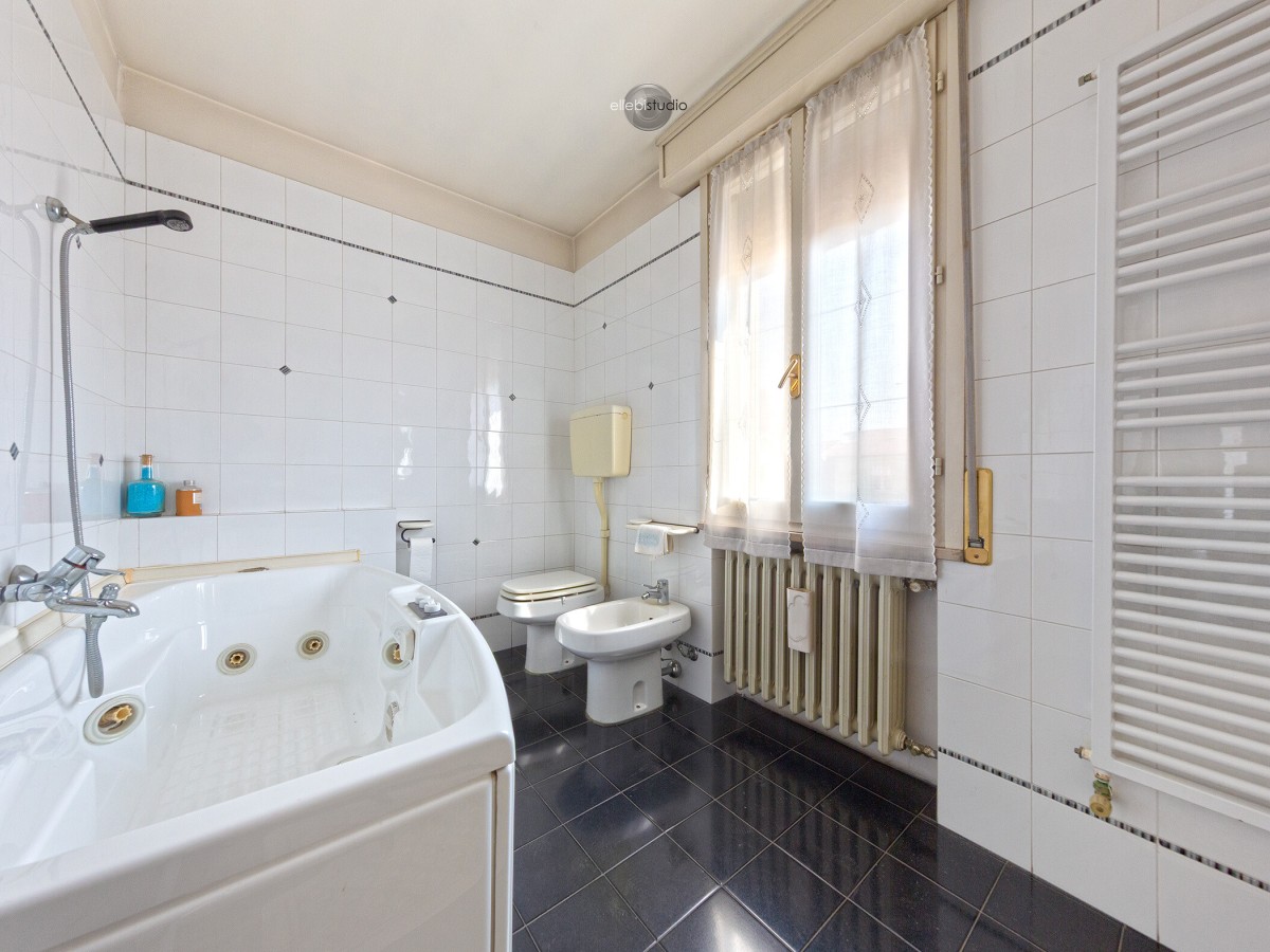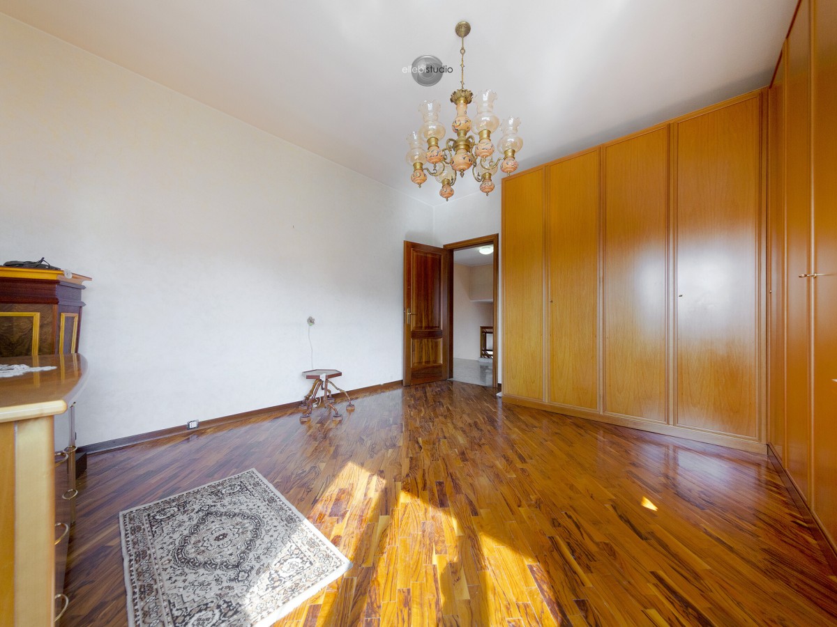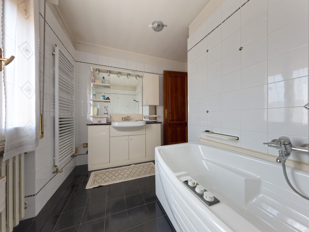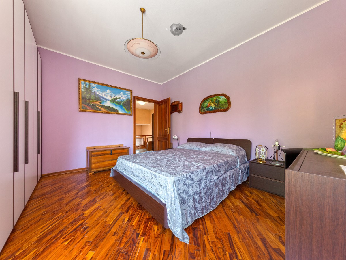 La zona notte, situata al piano superiore, è composta da tre camere da letto matrimoniali con pavimentazione in parquet e un bagno dotato di vasca idromassaggio, garantendo comfort e vivibilità per tutta la famiglia.