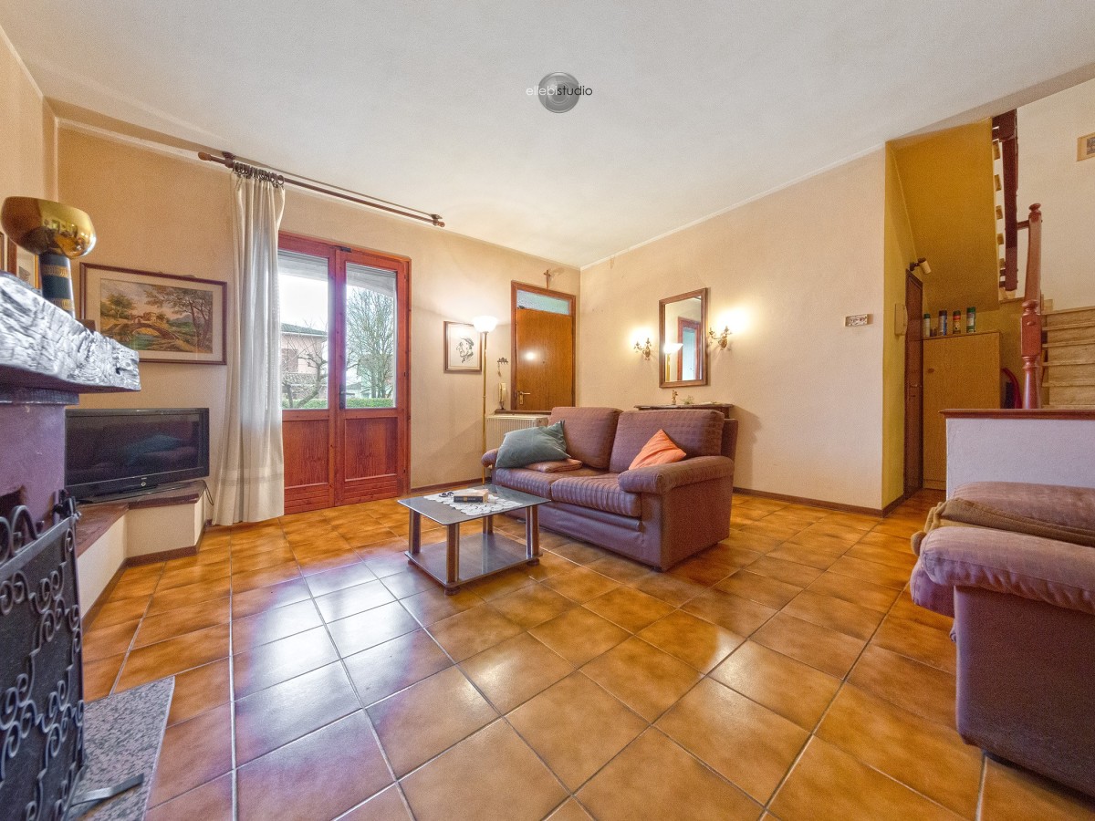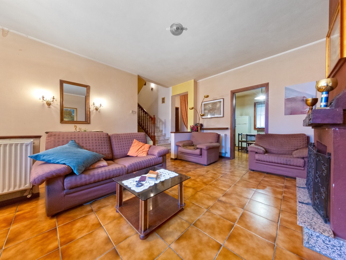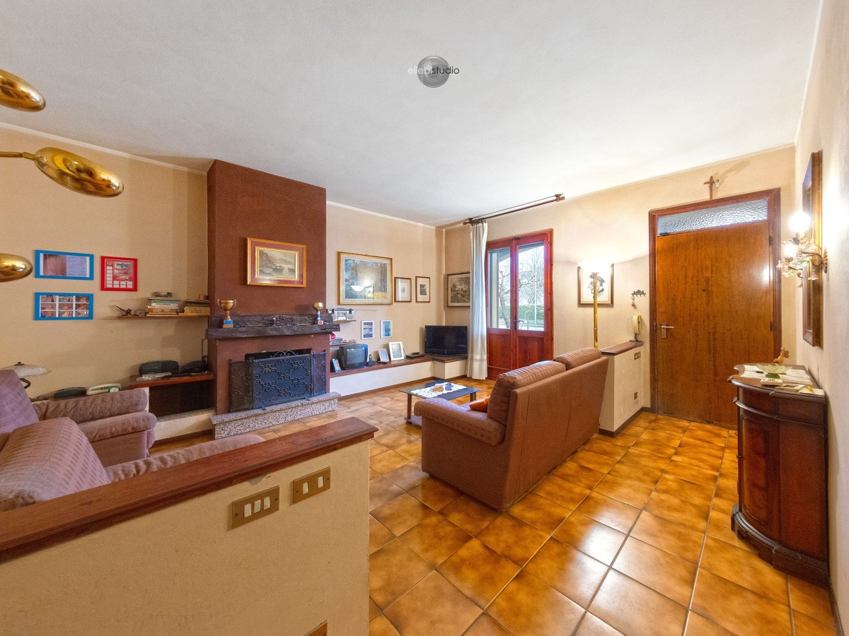 Al piano terra, varcata la porta principale, si viene accolti da un soggiorno ampio e luminoso, impreziosito dalla presenza del camino, ideale per vivere momenti di comfort e relax in famiglia.