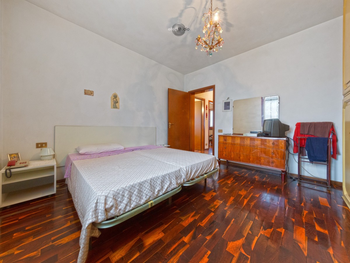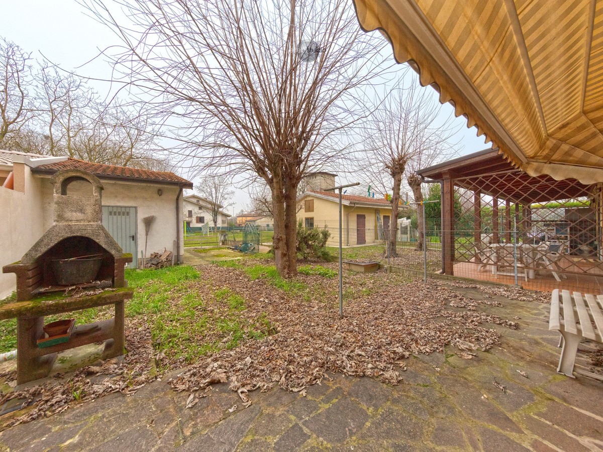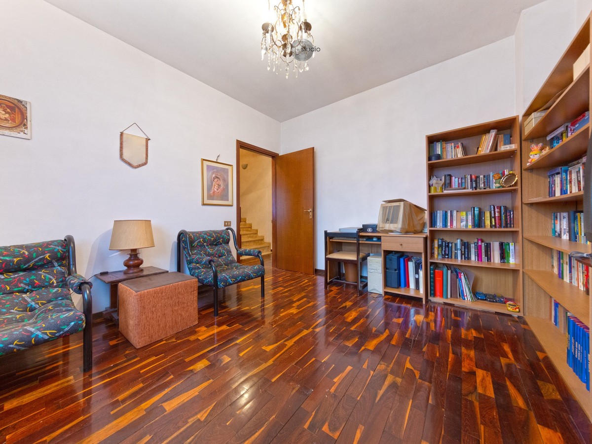 La cucina con sala da pranzo, separata dal soggiorno, rappresenta un importante valore aggiunto: questa disposizione consente una migliore gestione degli spazi e degli odori, mantenendo la zona living sempre ordinata. Dalla cucina si accede direttamente al giardino posteriore, che affaccia sul parco e sulla seconda autorimessa, perfetta come spazio di stoccaggio aggiuntivo o come piccolo laboratorio/hobby.