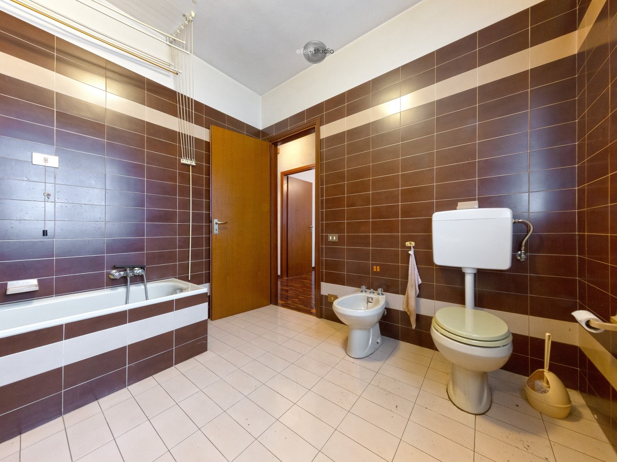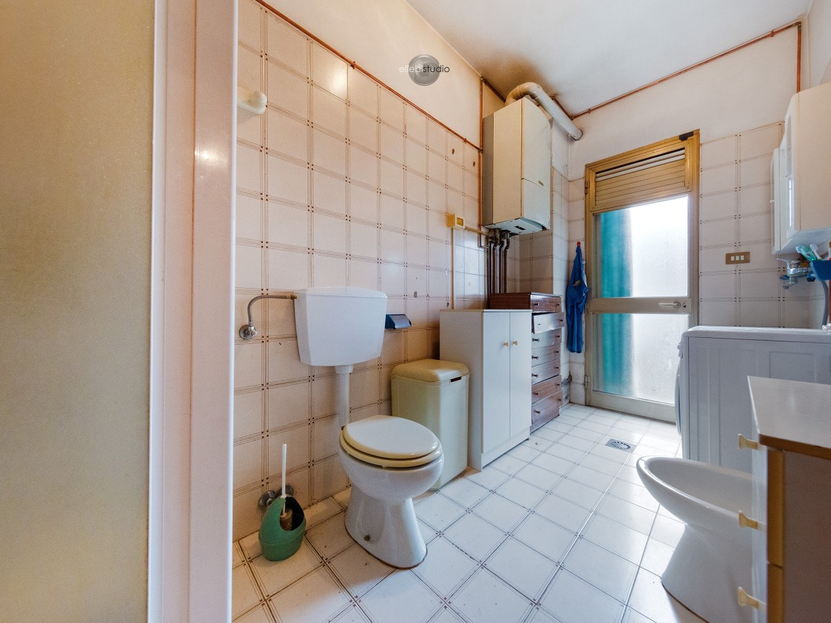 Il piano terra è completato da un bagno–lavanderia, pratico come bagno di servizio e funzionale per la gestione della lavanderia, con comodo accesso all’esterno per stendere.