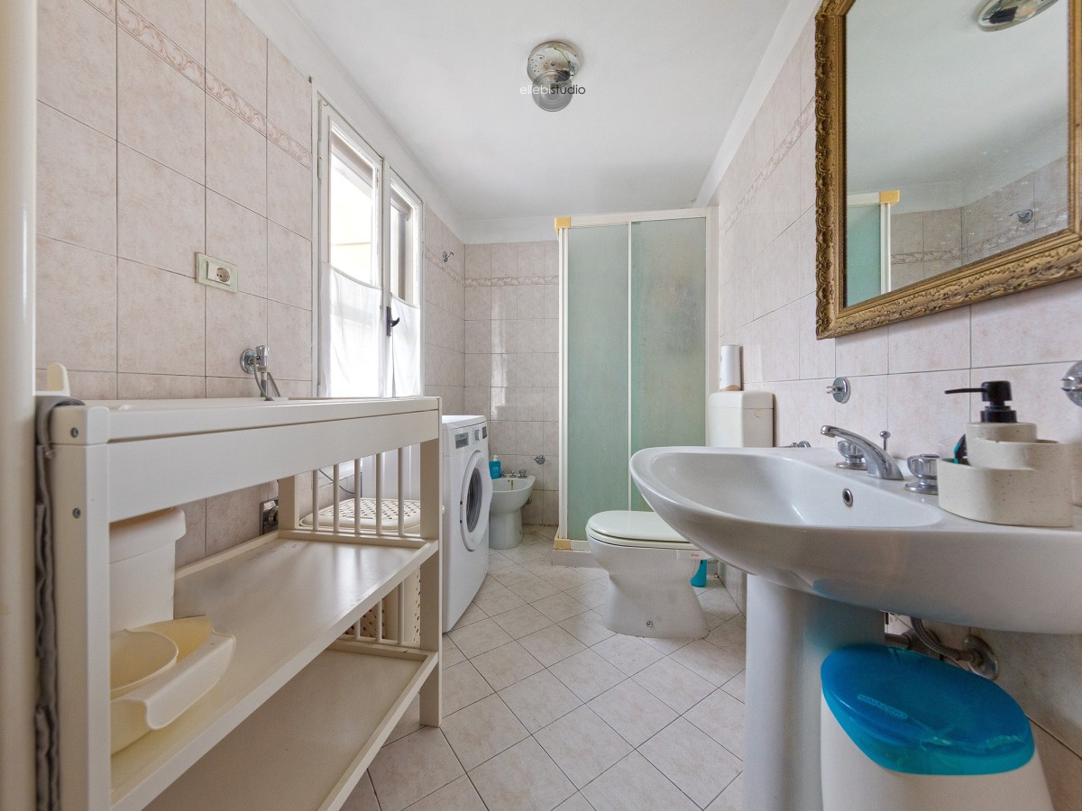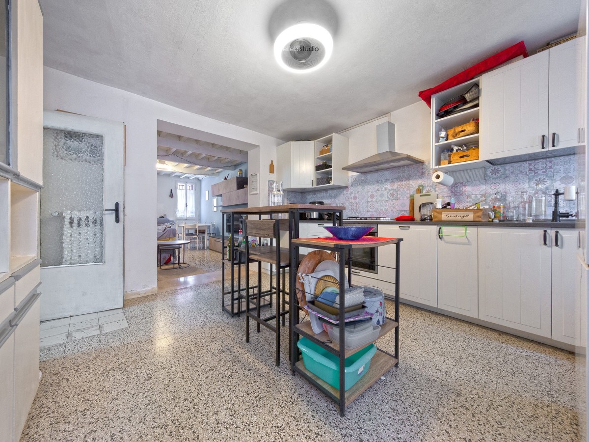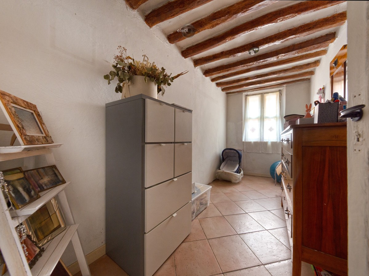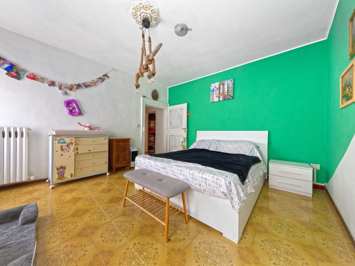 Dalla cucina si accede al vano scale; sul pianerottolo intermedio troviamo il bagno, che collega la zona giorno alla zona notte. Quest’ultima è composta da due camere matrimoniali spaziose e da una mezza camera, adattabile a cabina armadio, studio o cameretta. Completa la proprietà un sottotetto utilizzabile come ripostiglio.