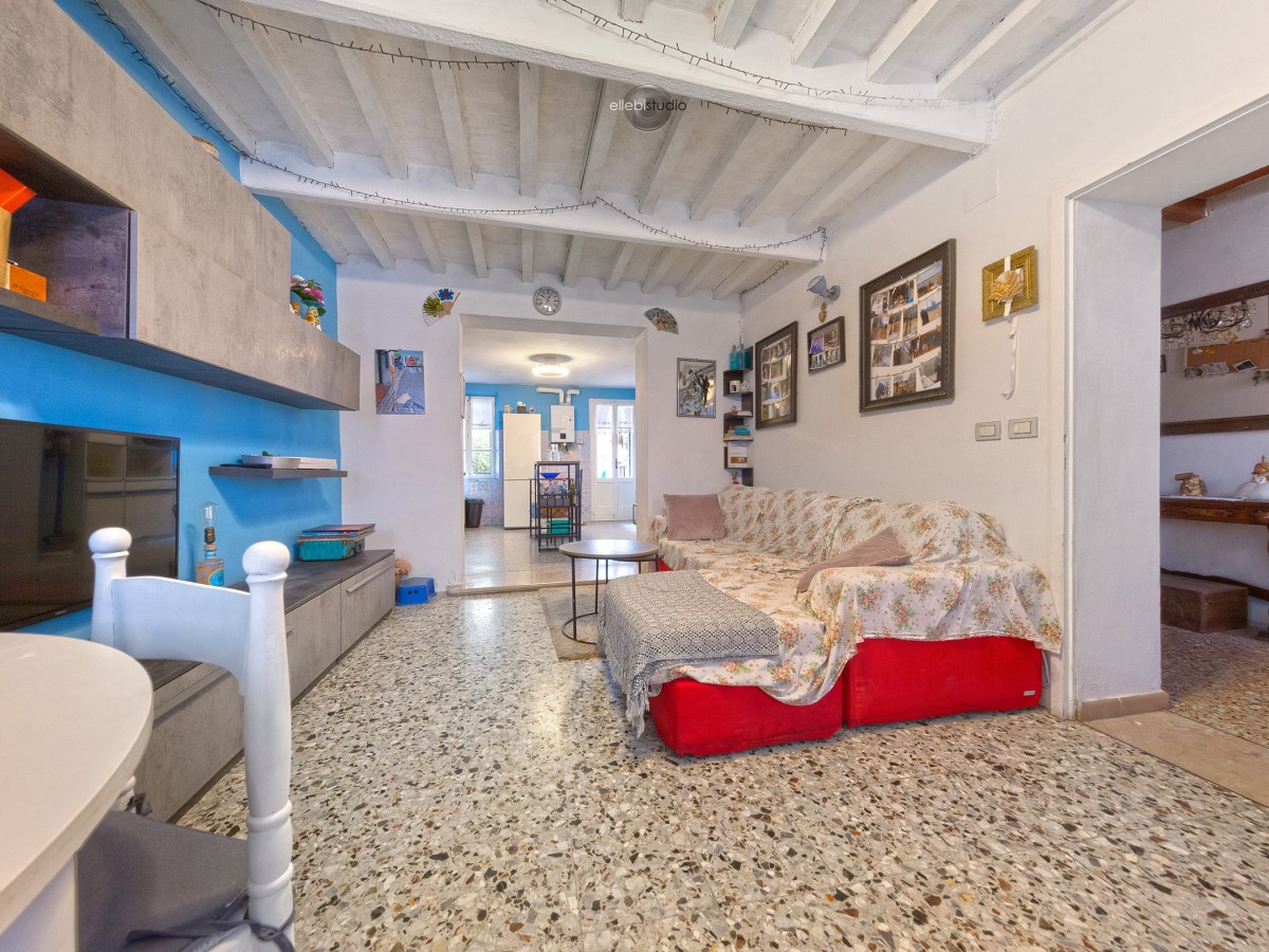 L’ingresso si apre su un disimpegno che conduce alla zona living, sviluppata in modo verticale e organizzata in open space. La cucina, ampia e funzionale, si affaccia su un balconcino con vista sul giardino privato posto sul retro dell’abitazione, uno spazio ideale come sfogo esterno per cene con amici o attività all’aperto.