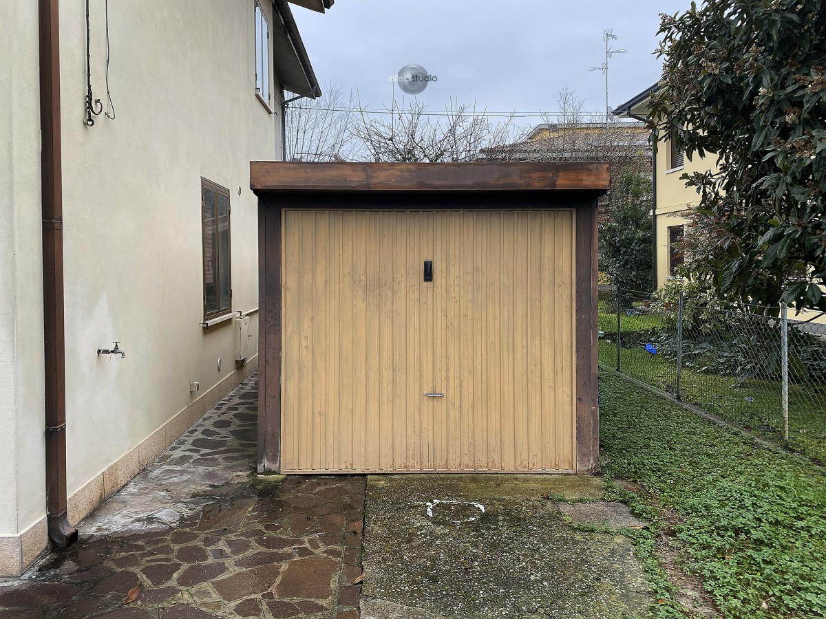 É presente un secondo box auto esterno, caratteristica che rende la soluzione particolarmente funzionale per famiglie.