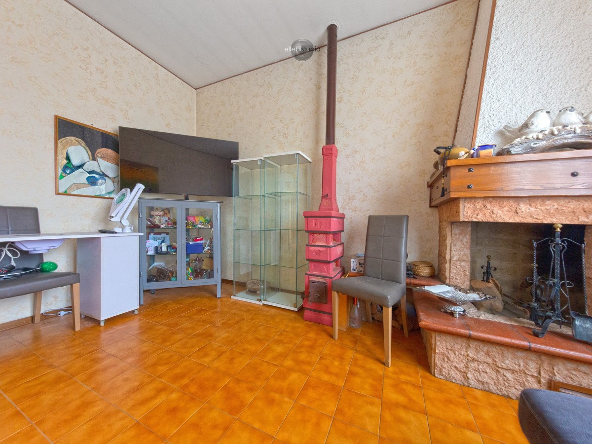 Sul medesimo livello si sviluppa la zona giorno, con ampio soggiorno impreziosito da camino, cucina separata e accesso a un balcone, perfetto per momenti di relax.