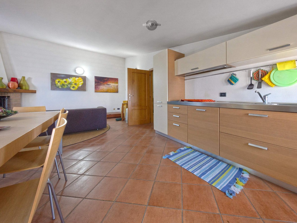 Piano terra: luminosa zona giorno con sala e cucina, bagno e camera da letto matrimoniale.