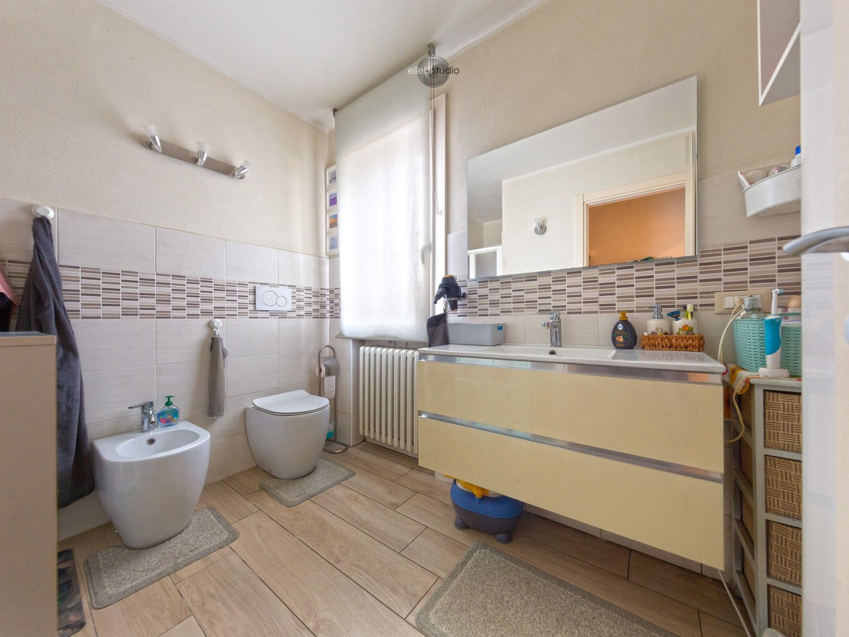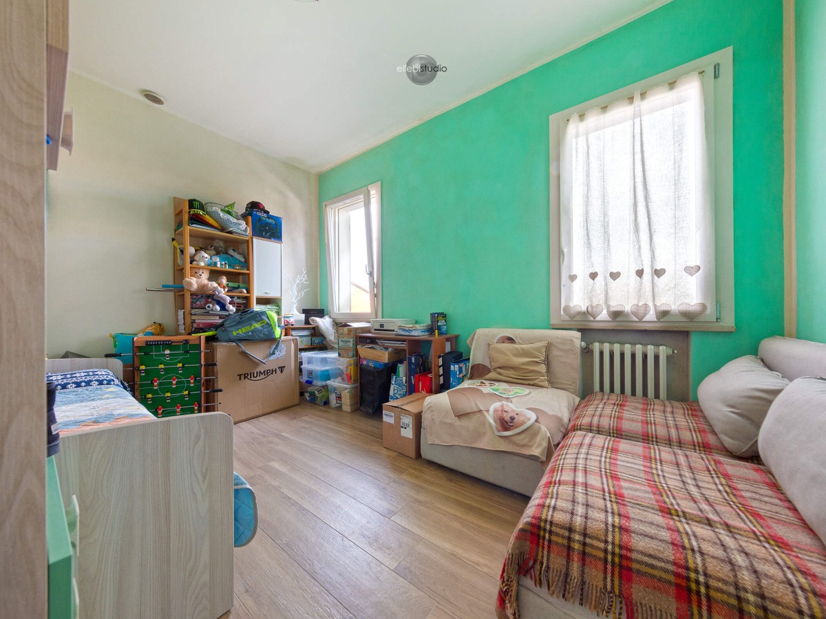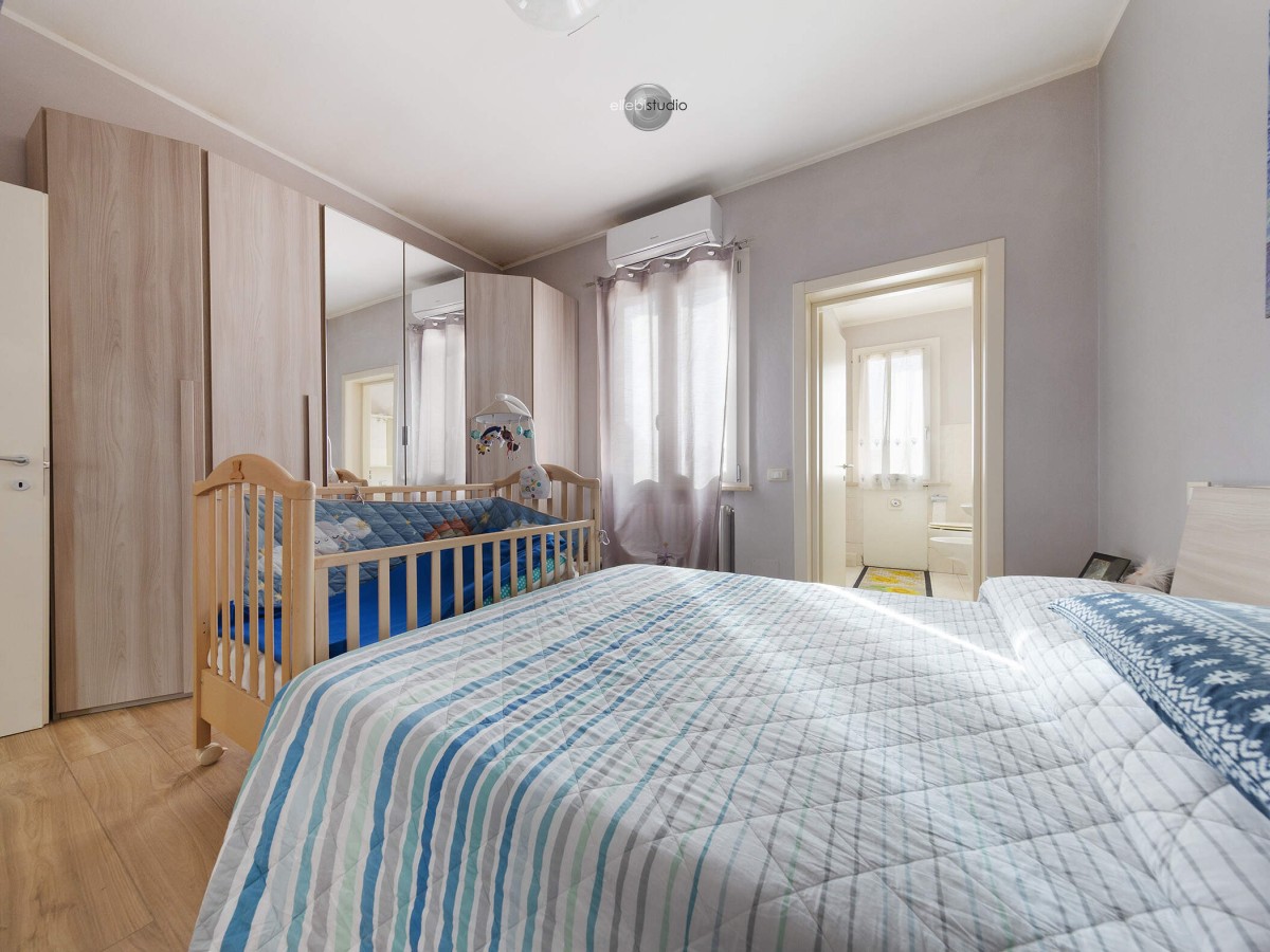 Salendo al piano superiore si sviluppa la zona notte con due camere da letto. Una delle due dispone di bagno privato, una caratteristica sempre più richiesta che garantisce comfort e privacy, rendendo l’abitazione adatta sia a una coppia che a una piccola famiglia.