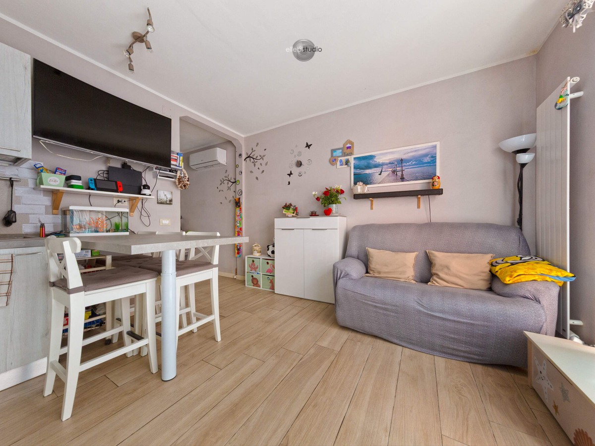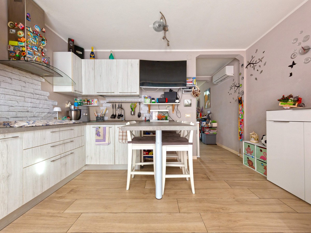 Al piano terra troviamo una zona giorno accogliente e funzionale composta da sala con angolo cottura, un ambiente conviviale e ben organizzato che si apre direttamente sul giardino sul retro di circa 140 metri quadri.