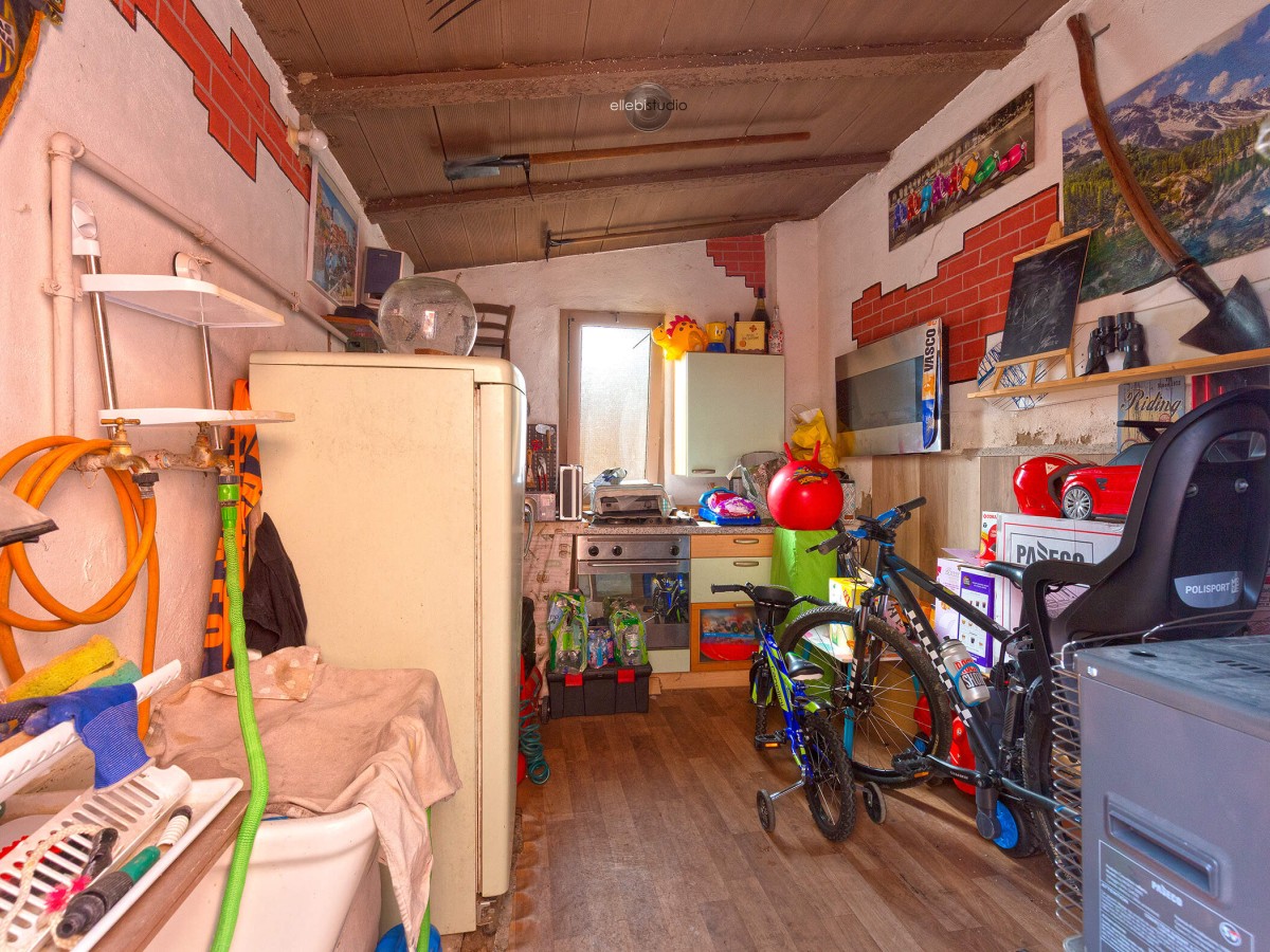 Questo spazio esterno, riservato e vivibile, è arricchito da una tettoia ideale per pranzi all’aperto e da un piccolo locale adibito a deposito, perfetto come ricovero attrezzi o spazio aggiuntivo. Sempre al piano terra sono presenti bagno e antibagno, comodi e ben distribuiti.