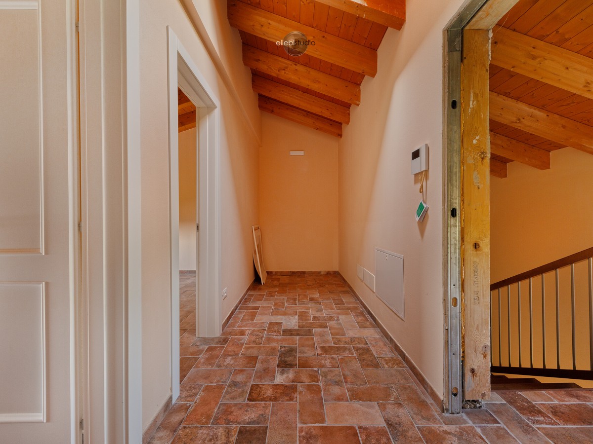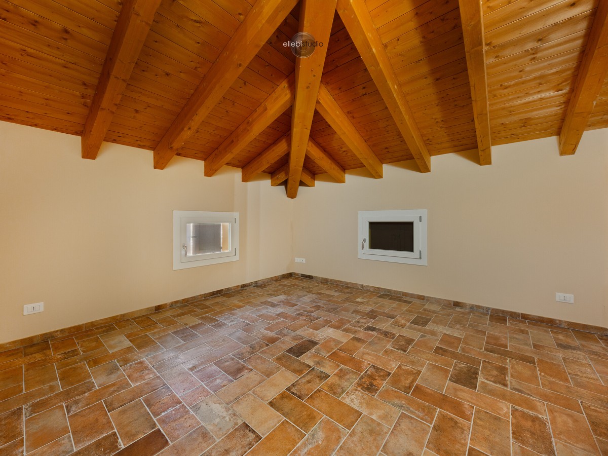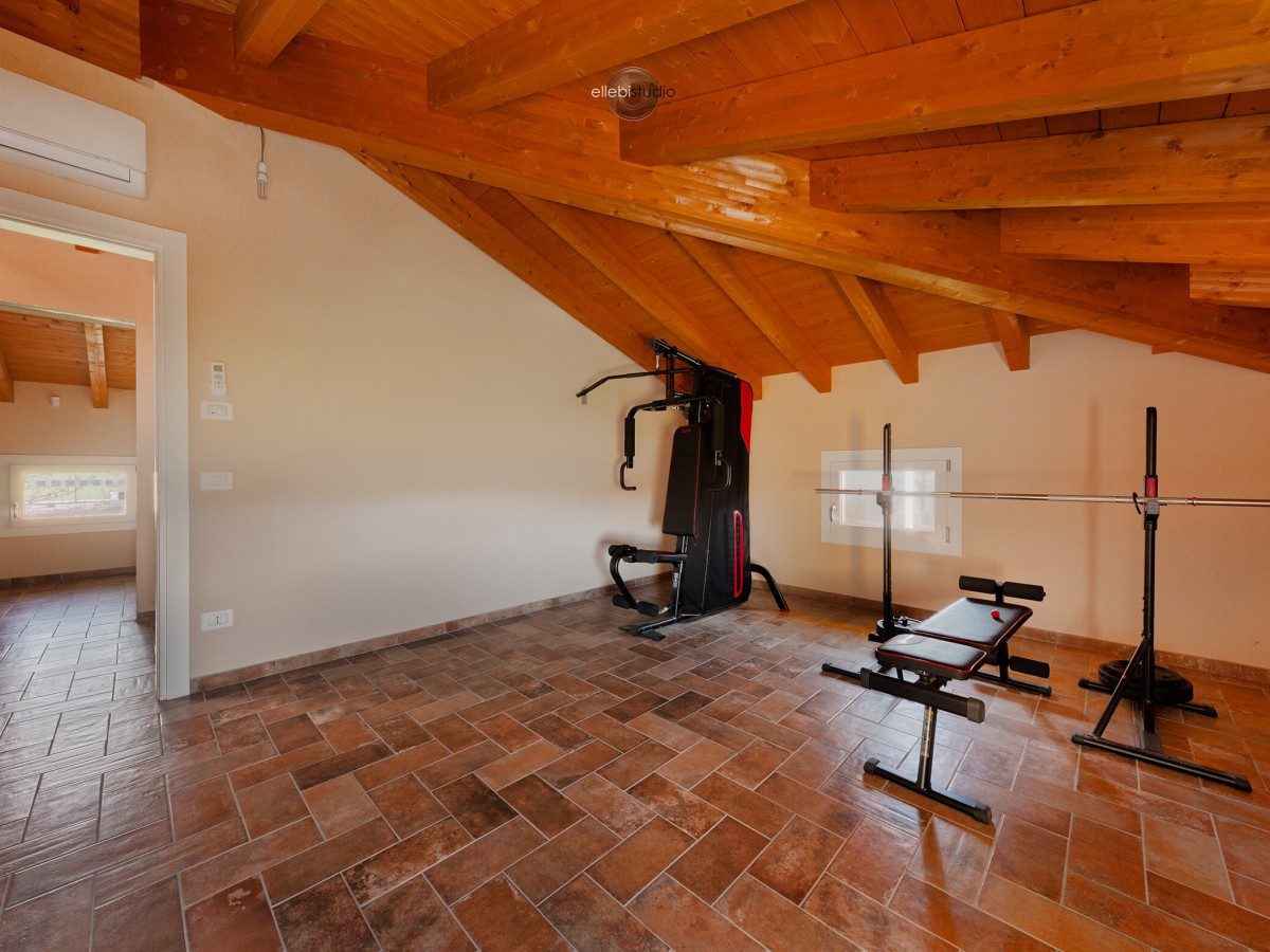 Al piano terra troviamo un’ampia zona giorno open space con soggiorno e angolo cottura, un bagno con vasca idromassaggio, lavanderia e accesso a un ampio deposito di 174 mq complessivi. Al primo piano si sviluppa la zona notte con tre camere da letto (di cui una matrimoniale) e un bagno, mentre al secondo piano è presente la soffitta.