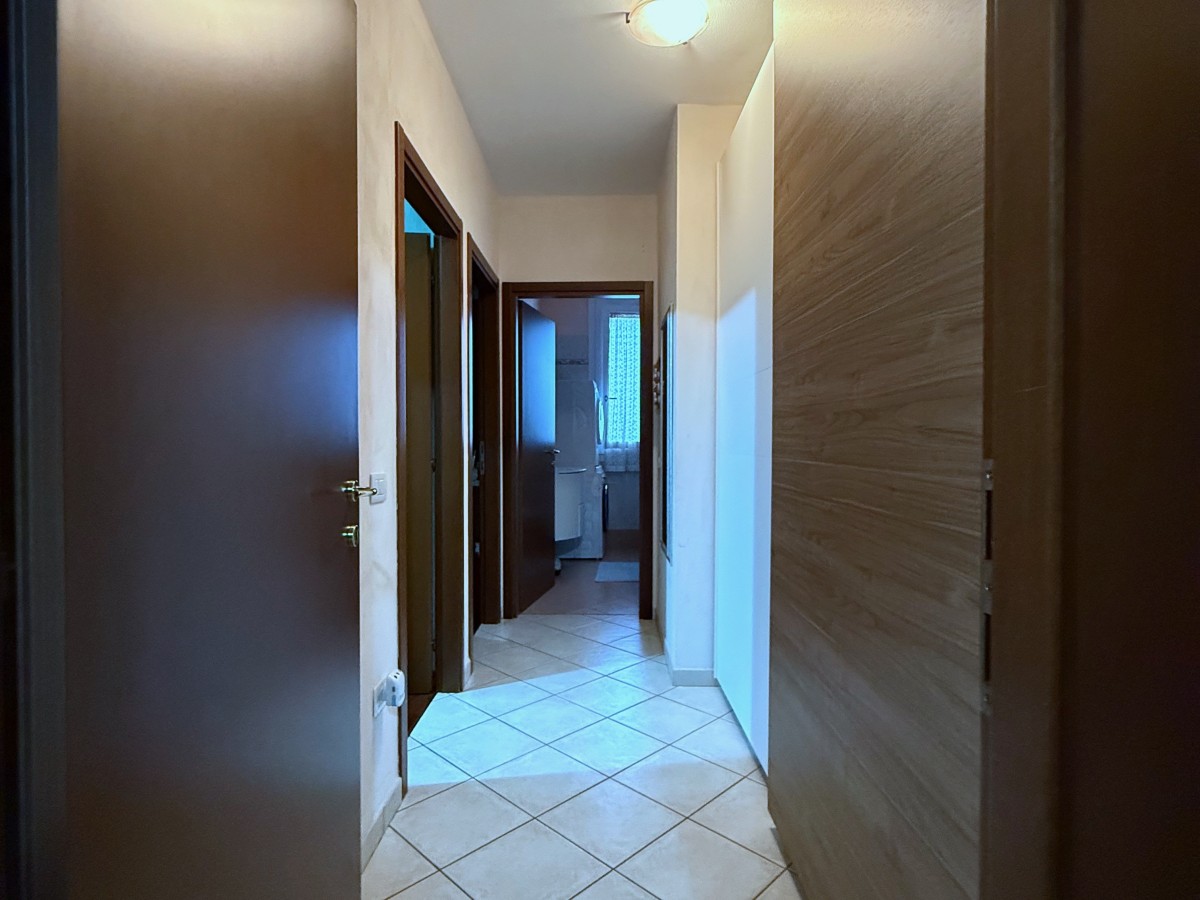 L’ingresso si apre su una luminosa zona giorno con angolo cottura e accesso a un grazioso terrazzino, ideale per momenti di relax all’aperto. La zona notte, ben separata, è composta da disimpegno, due camere da letto e bagno finestrato.