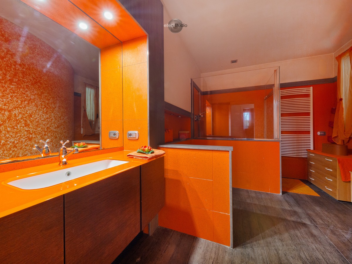 Bagno arancione con rivestimenti in microscaglie minerali