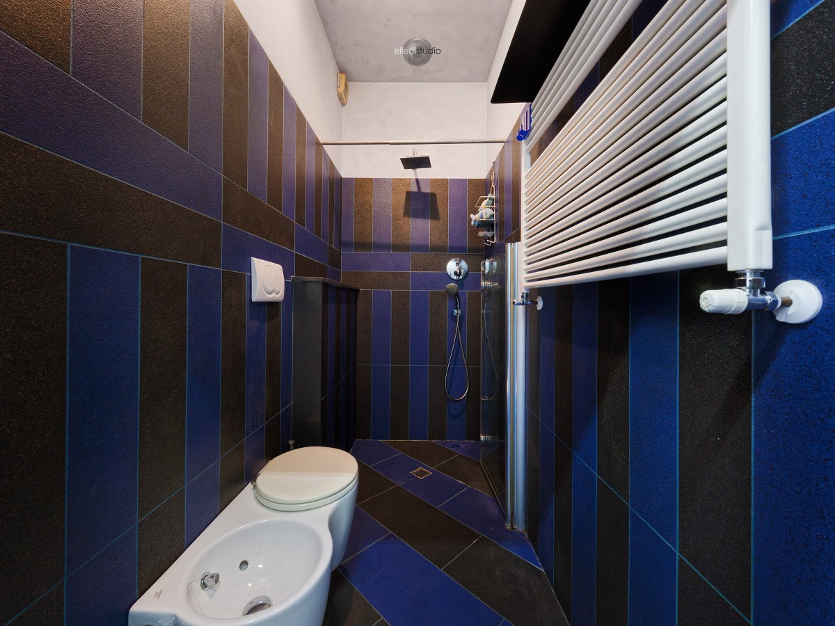 Ulteriore bagno dai toni blu/nero dal design moderno