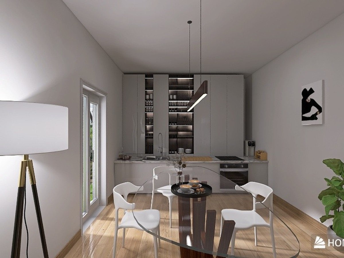 • Piano Terra: luminosa zona giorno con angolo cottura e bagno di servizio