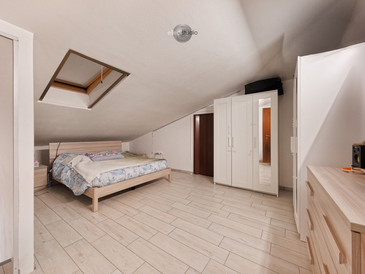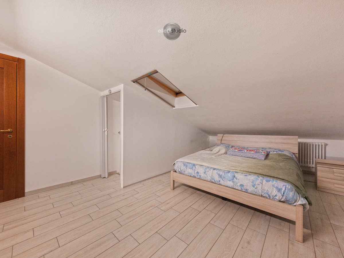 Al piano superiore si sviluppa la zona notte, composta da una spaziosa camera da letto matrimoniale, una cabina armadio e un secondo bagno.