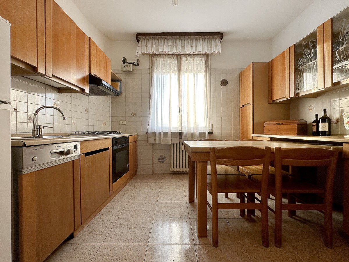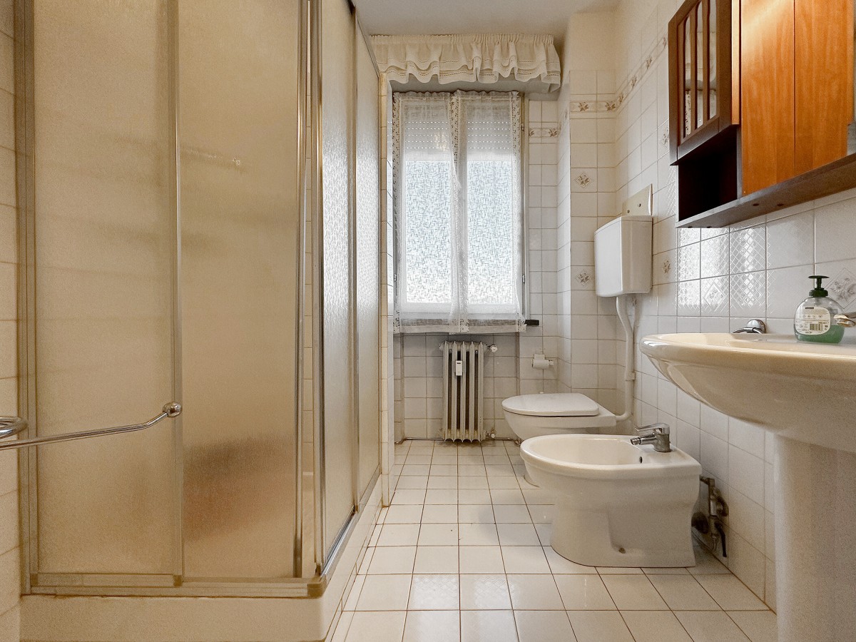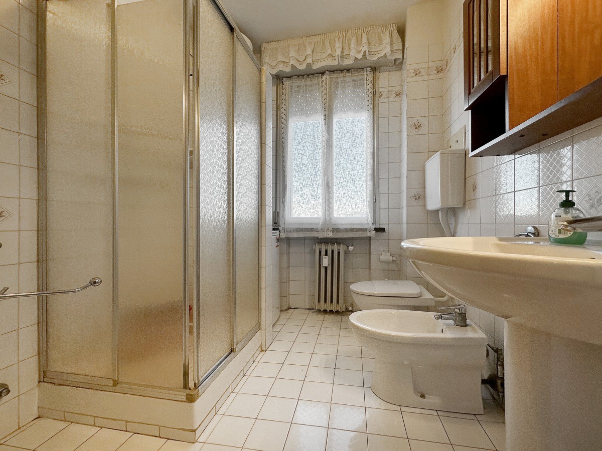 Appartamento trilocale posto al terzo piano di un contesto condominiale servito da ascensore, situato a San Martino in Rio, in posizione centrale e comoda a tutti i principali servizi. L’ingresso si apre su un disimpegno che distribuisce razionalmente gli ambienti della zona giorno, composta da cucina abitabile e soggiorno separato con accesso al balcone. La zona notte è ben distinta e comprende un secondo disimpegno, due camere matrimoniali e il bagno. L’ultima ristrutturazione dell’appartamento risale agli anni Novanta e ha interessato il bagno e l’impianto elettrico; sono inoltre presenti infissi con doppio vetro e porta blindata. Completano la proprietà cantina e garage.