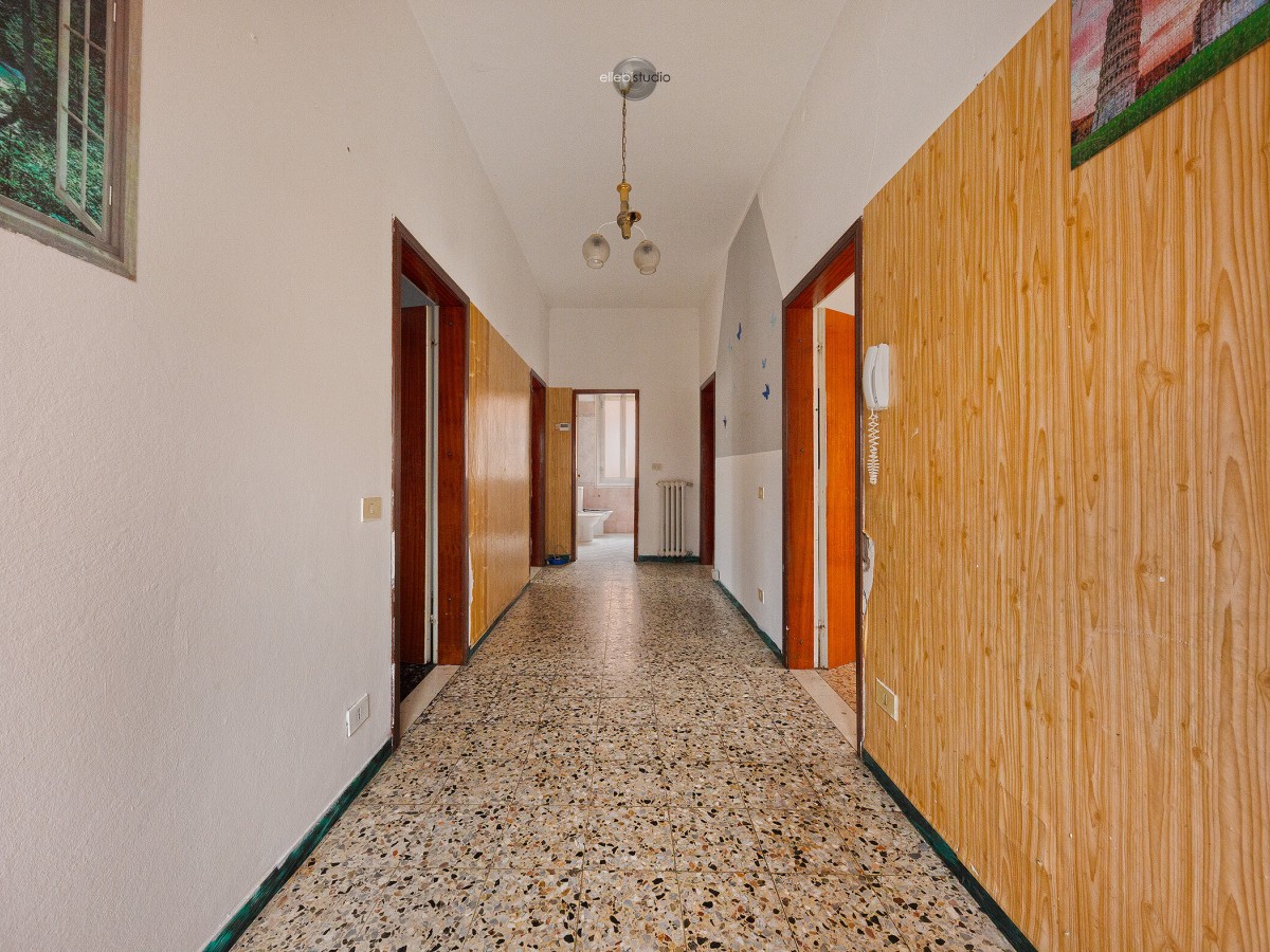Il primo piano è composto da ingresso in disimpegno, soggiorno, cucina separata, due camere da letto e bagno finestrato.