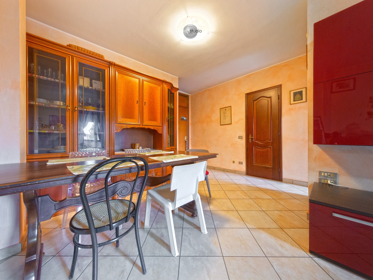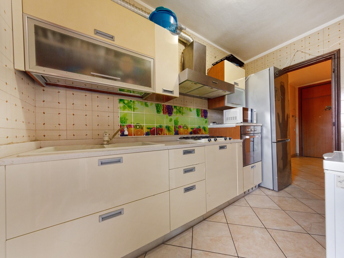 La cucina è separata, funzionale e ben organizzata: uno spazio pratico, pensato per chi ama cucinare senza rinunciare alla distinzione degli ambienti. Da qui si accede al balcone, perfetto per una pausa all’aria aperta o per gestire comodamente la quotidianità.