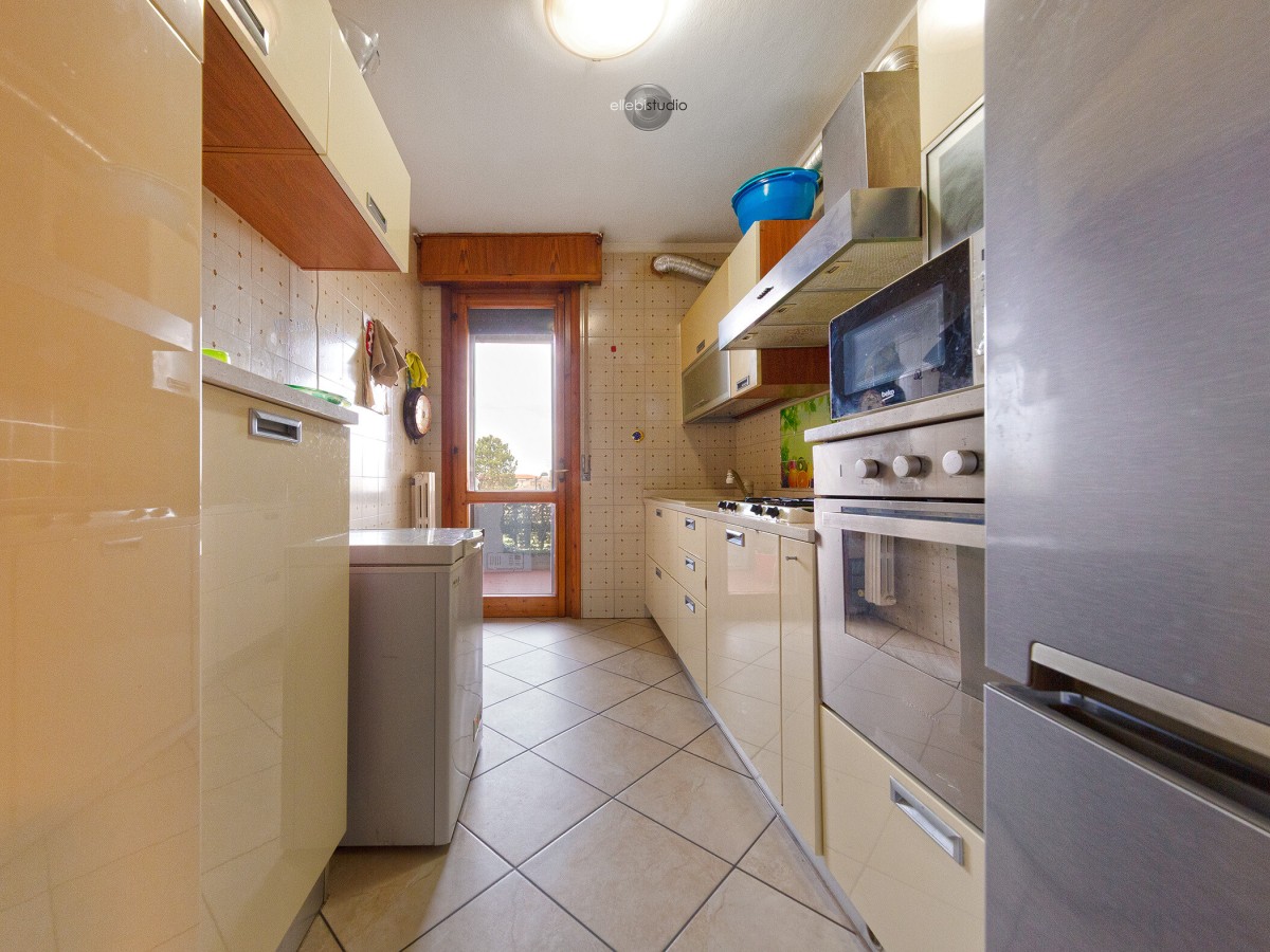 La cucina è separata, funzionale e ben organizzata: uno spazio pratico, pensato per chi ama cucinare senza rinunciare alla distinzione degli ambienti. Da qui si accede al balcone, perfetto per una pausa all’aria aperta o per gestire comodamente la quotidianità.